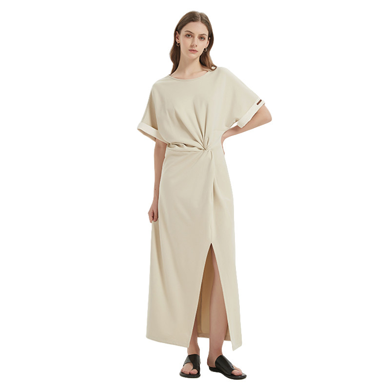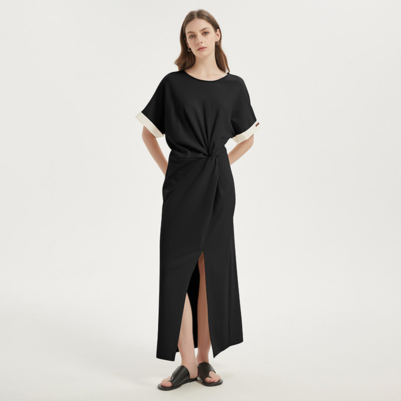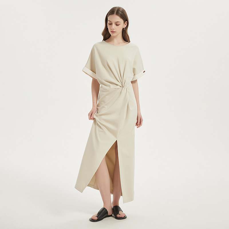 森马连衣裙女夏季扭结开叉正肩T恤裙简约小心机显瘦不规则中长裙