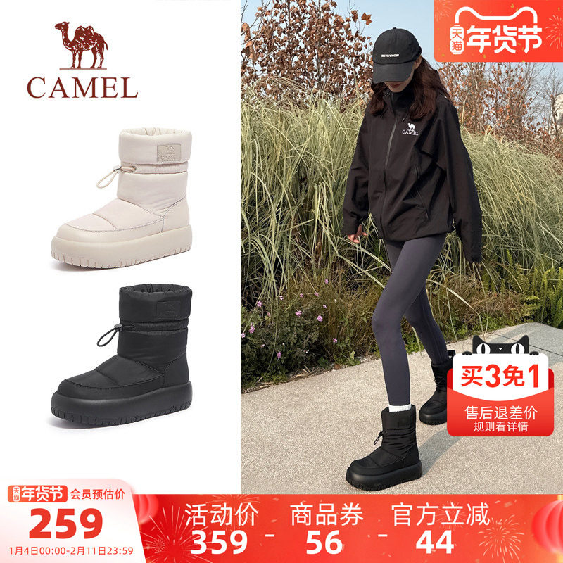 骆驼女鞋冬季新款加绒保暖雪地靴女款圆头短靴时尚百搭棉鞋女靴子