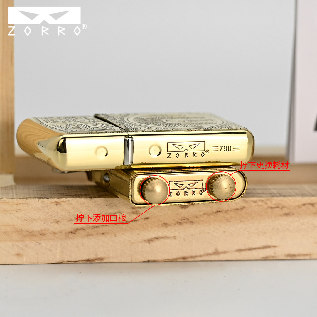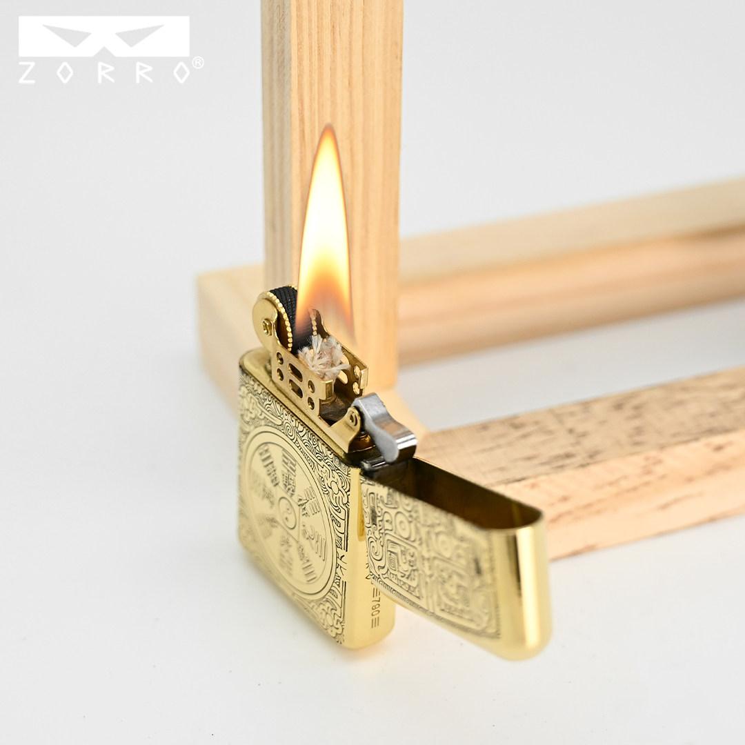 zorro佐罗官方正品原铜790山鬼花钱煤油打火机防风创意送男友礼物
