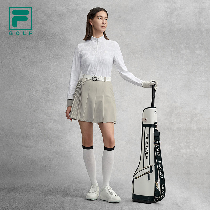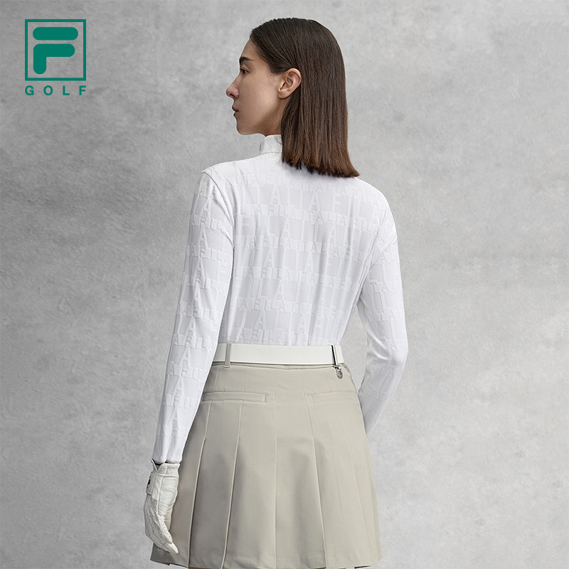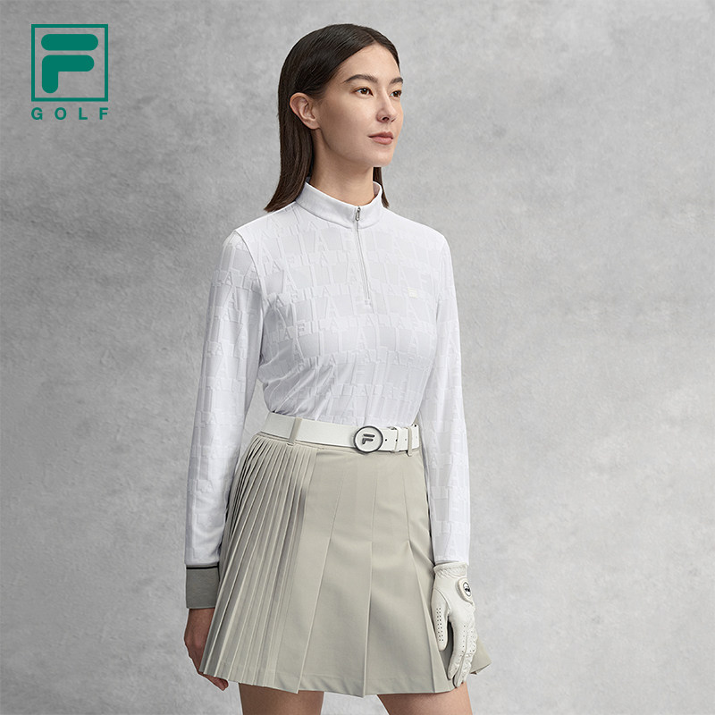 FILA 斐乐官方女子长袖上衣2026春季新款高尔夫运动半拉链满印长T