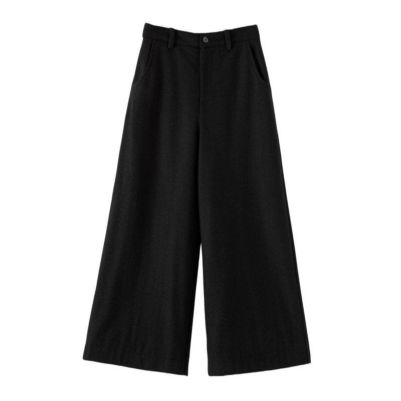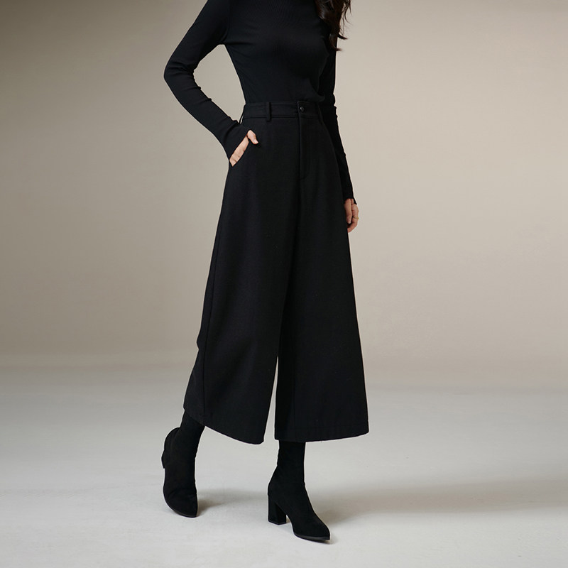 晚白年冬新款时尚简约靴裤高腰遮胯显瘦九分裤通勤羊毛阔腿裤女