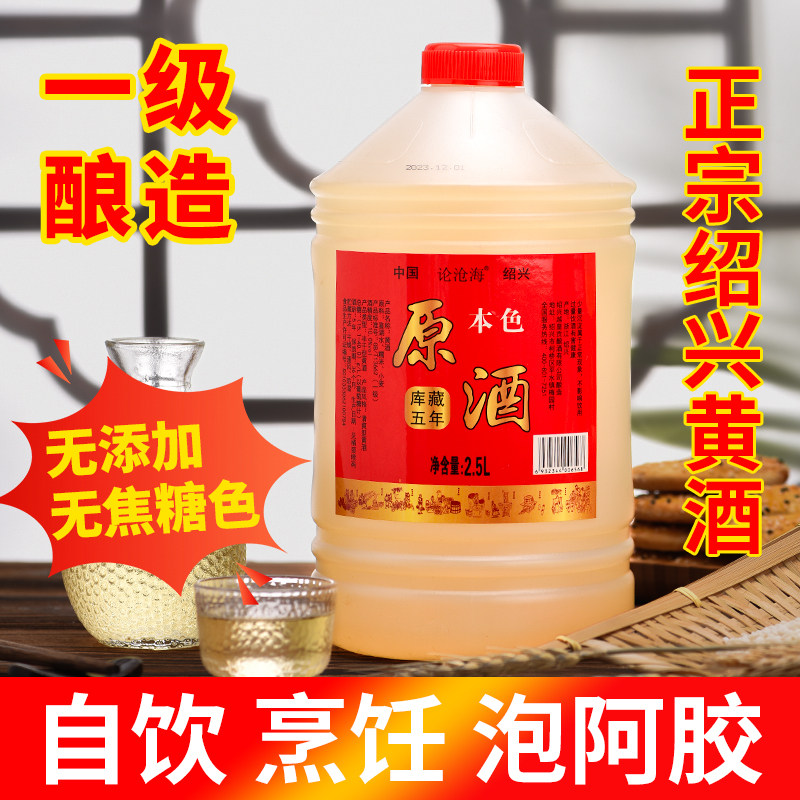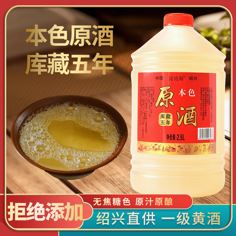 论沧海本色黄酒无焦糖色绍兴花雕正宗浙江老酒厨用5L五年桶装干型