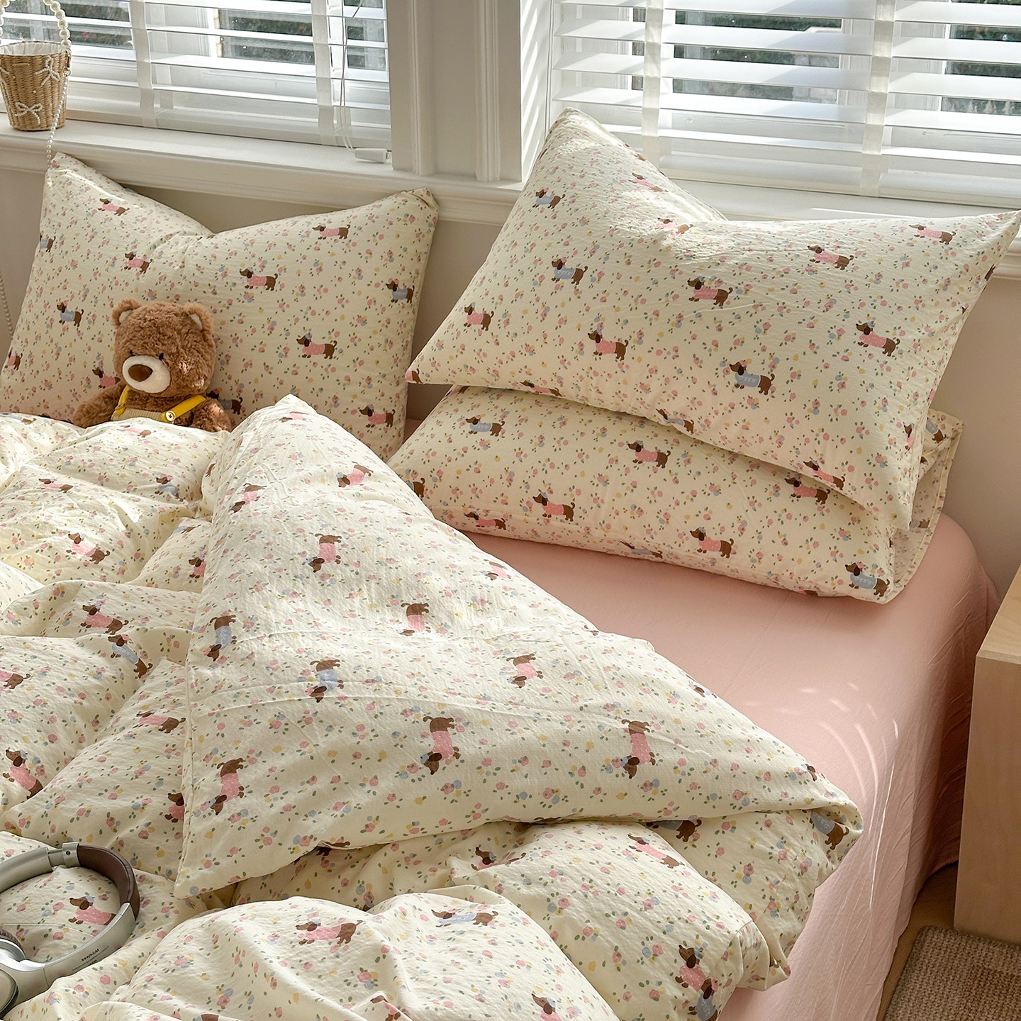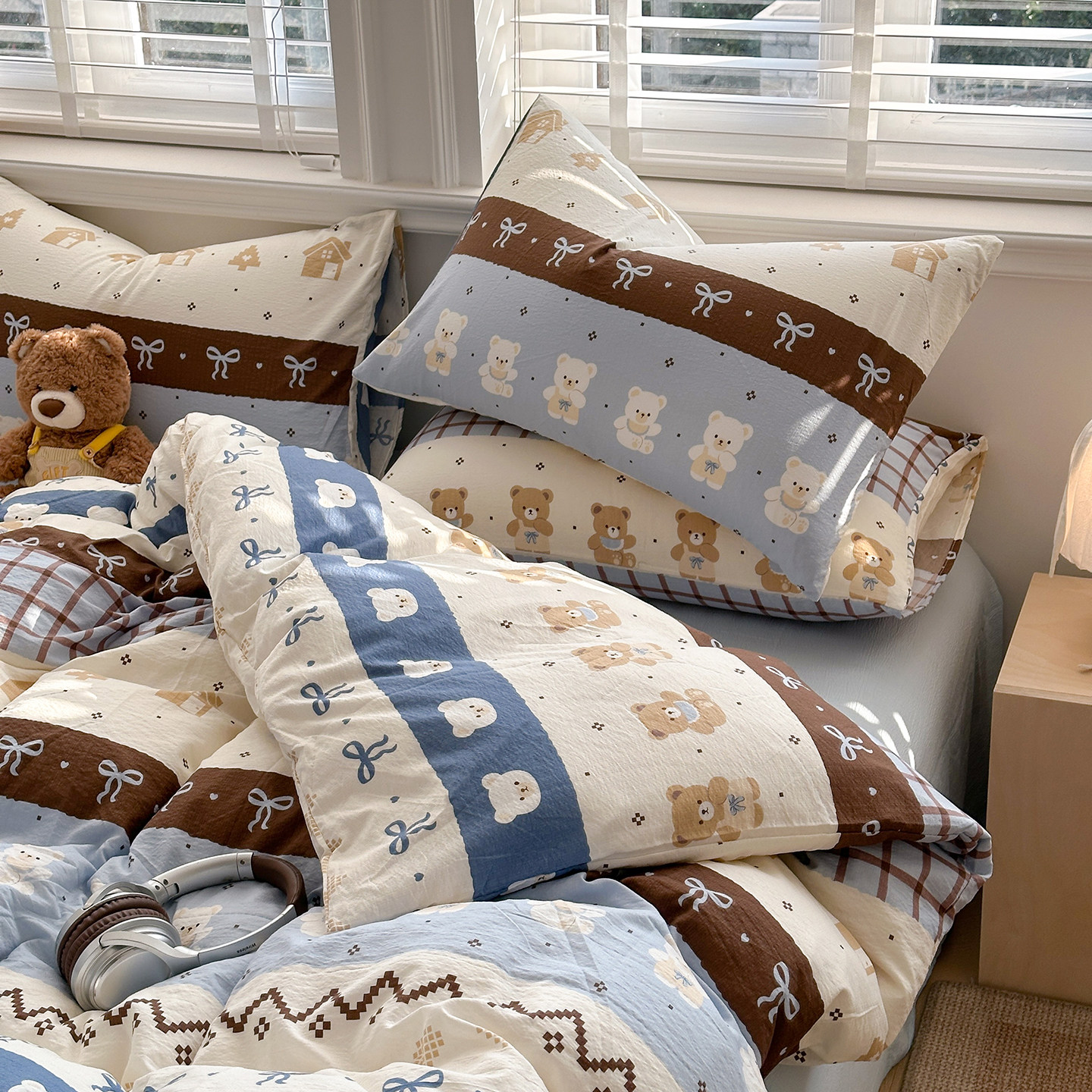 TeenieWeenie全棉水洗棉四件套100纯棉被套床单床笠款床上三件套4
