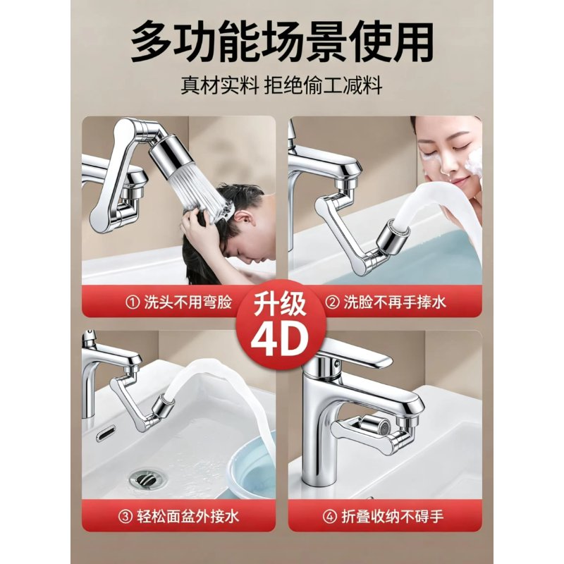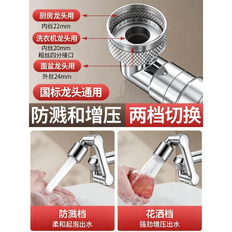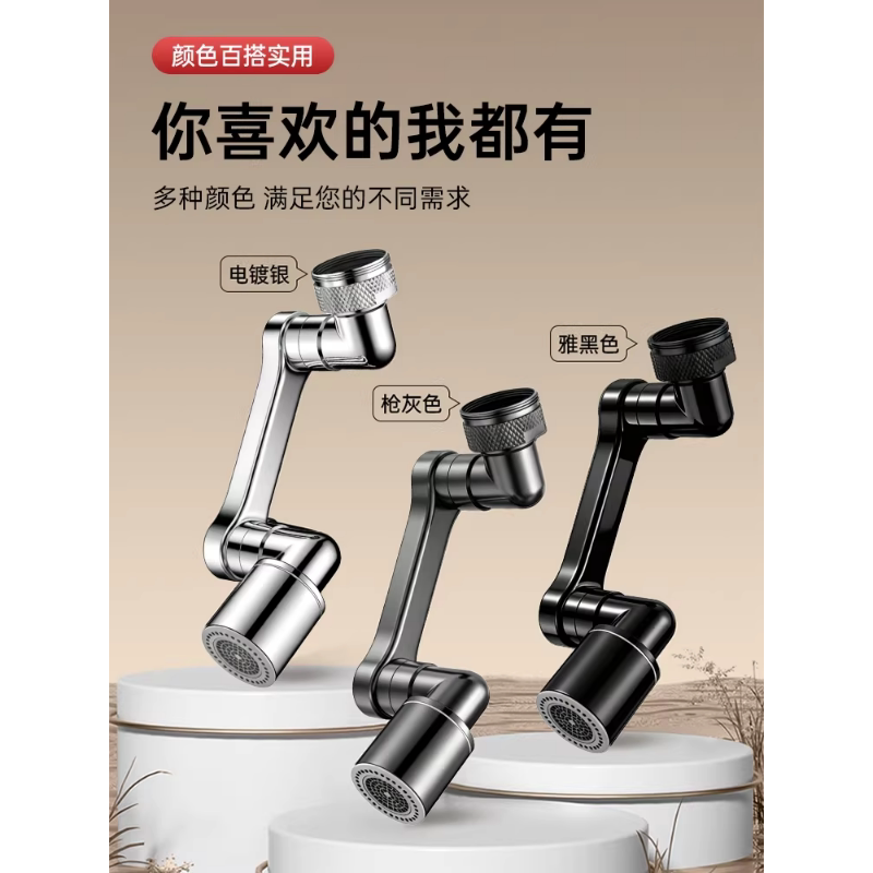 机械臂万向水龙头延伸器可旋转洗脸盆万能接头防溅神器全铜厨房