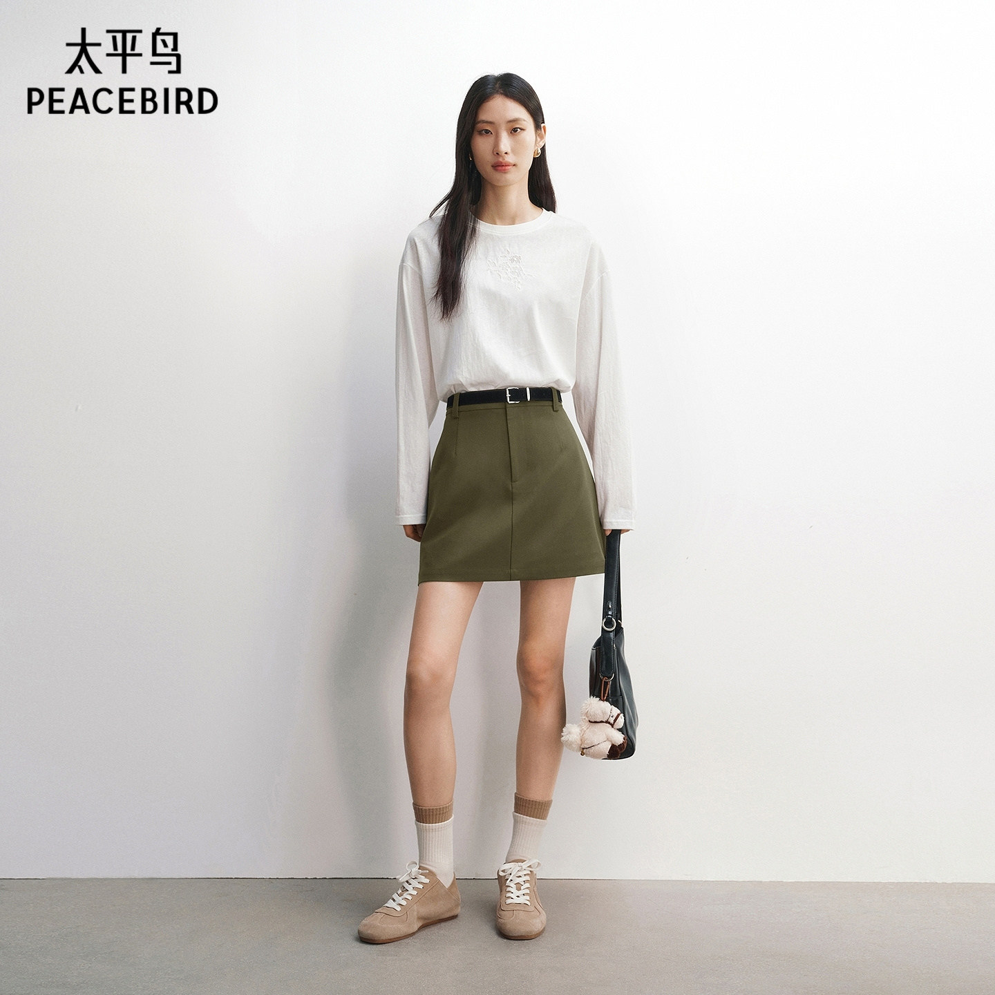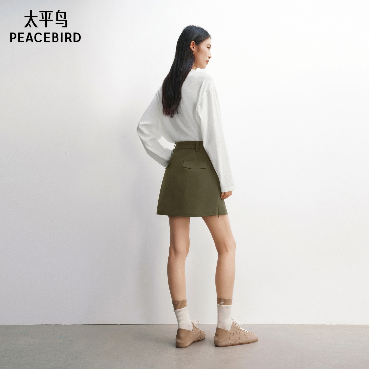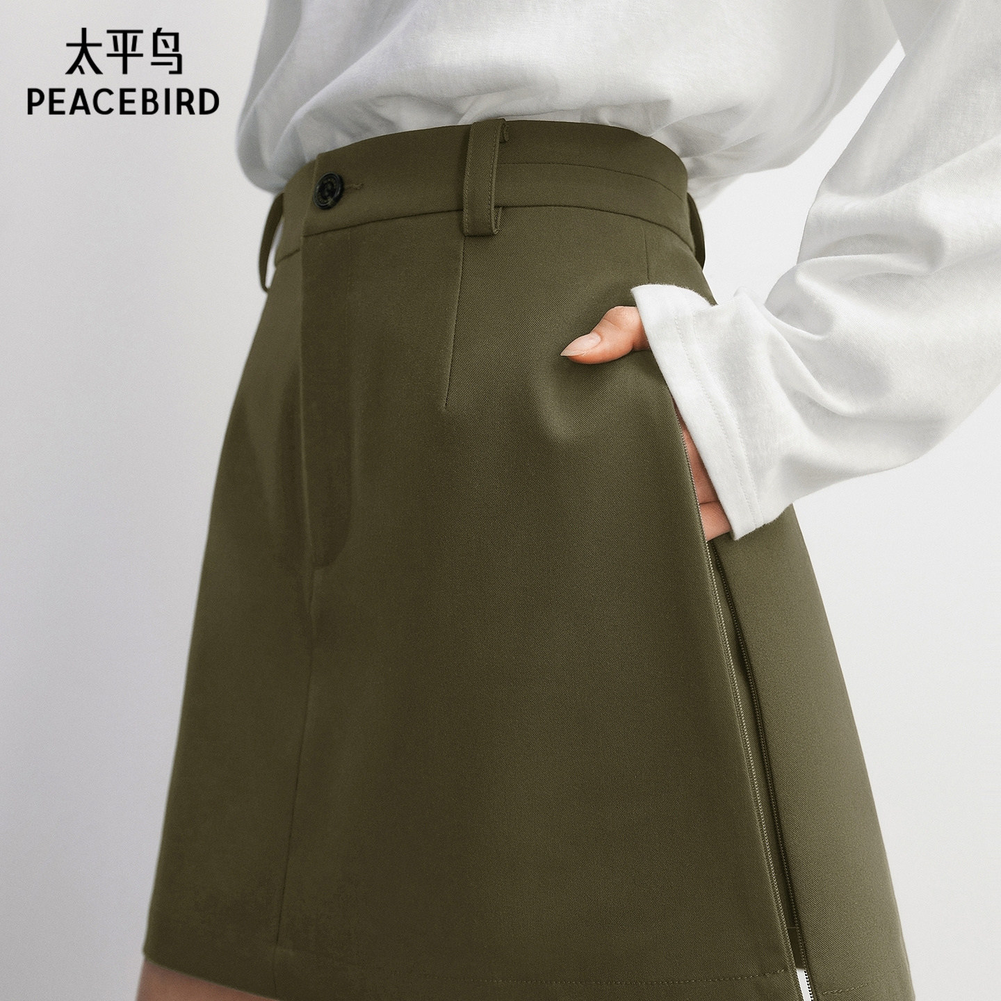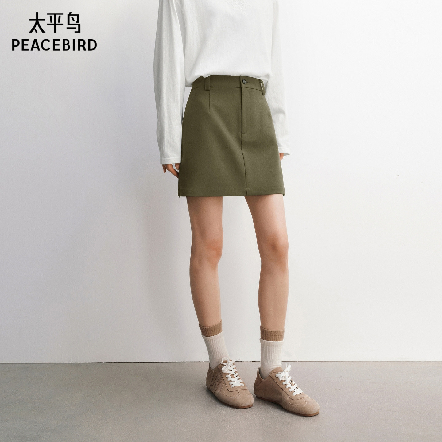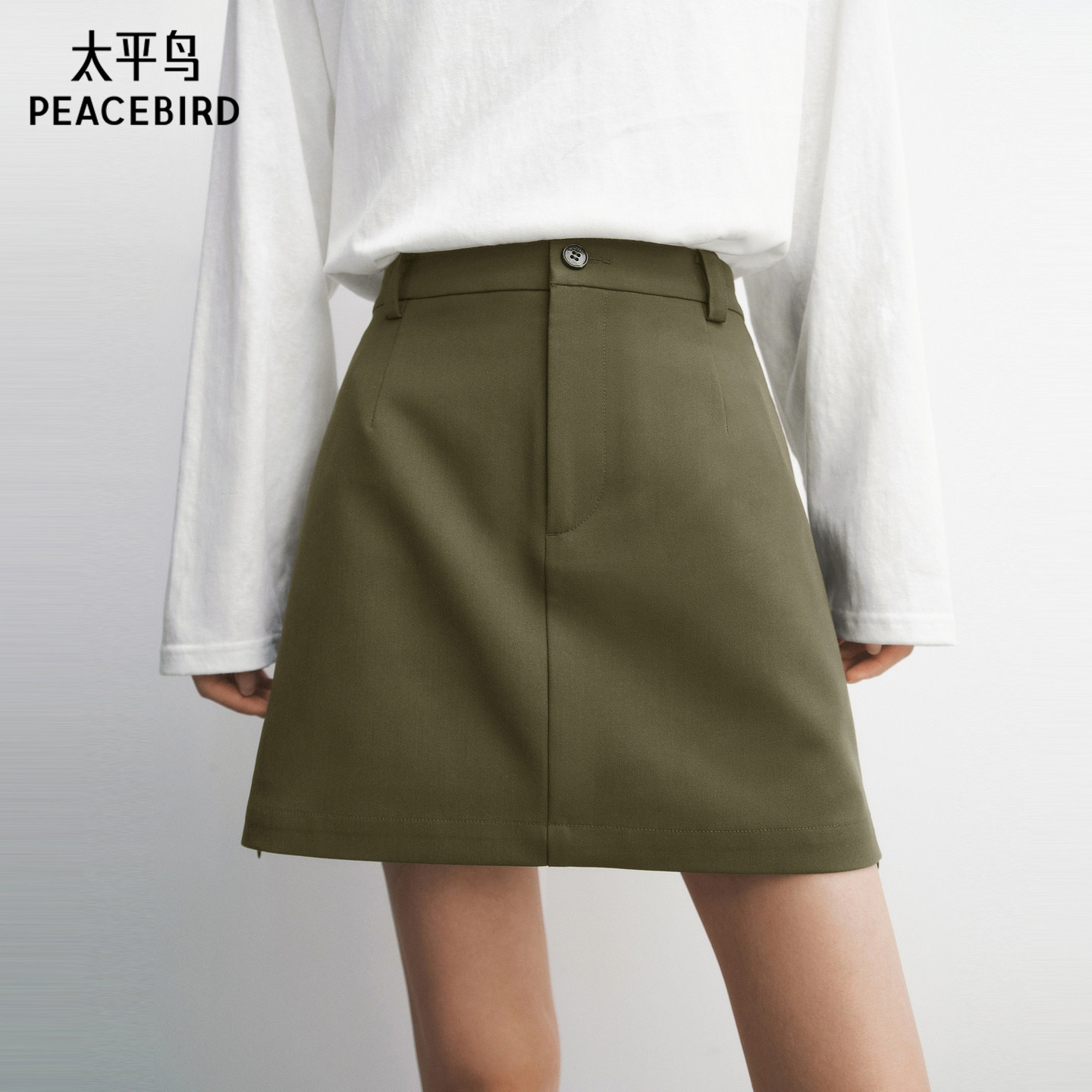 太平鸟A字短裙半身裙防走光裙裤设计2026春夏新款品质绿色裙子女