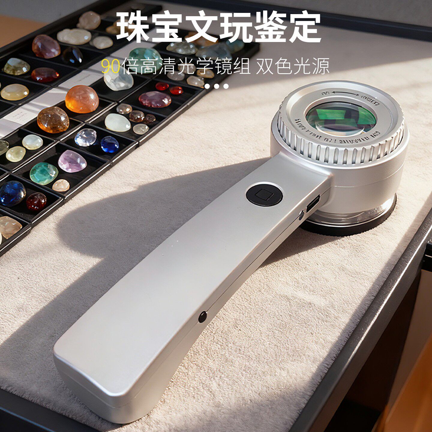 拜斯特正品90倍放大镜高清鉴宝师专用充电带三光源手电筒看翡翠珠
