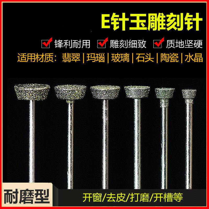 E针原石开窗去皮开槽压砣金刚砂钻头雕刻翡翠玉石电动打磨头石材