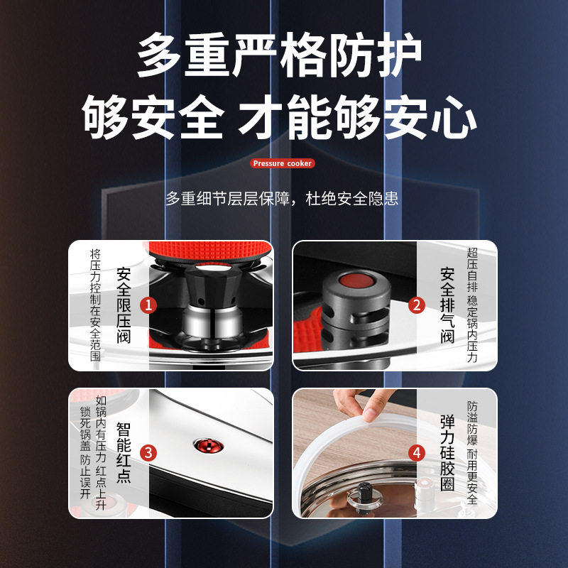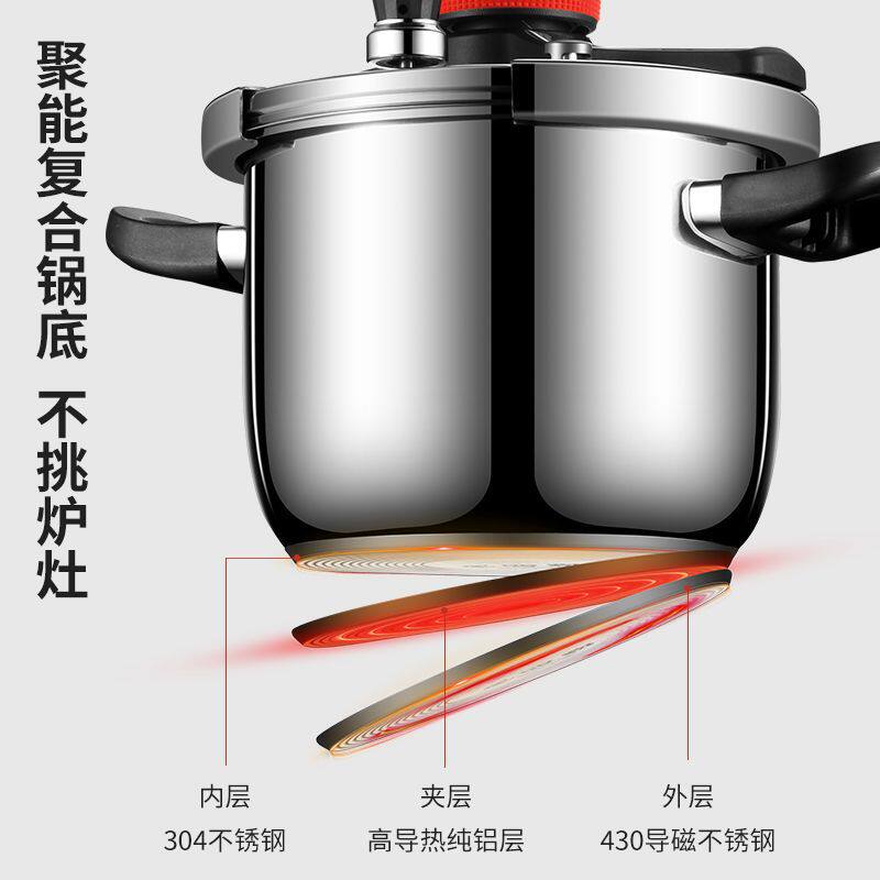德国高压锅家用加厚304不锈钢燃气电磁炉通用防爆旋转式压力锅