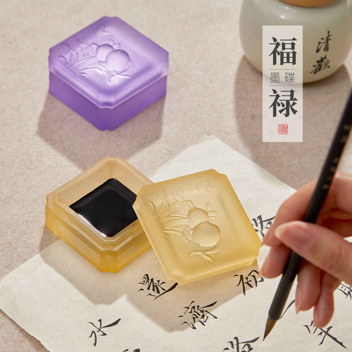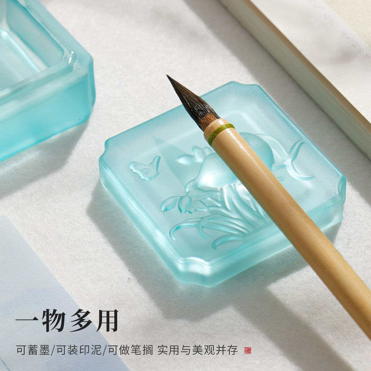 六品堂墨盒琉璃砚台带盖不干墨高颜值保湿透明书法专用墨蝶摆件玻璃墨盘高档文房四宝墨水墨汁墨碟墨池毛笔
