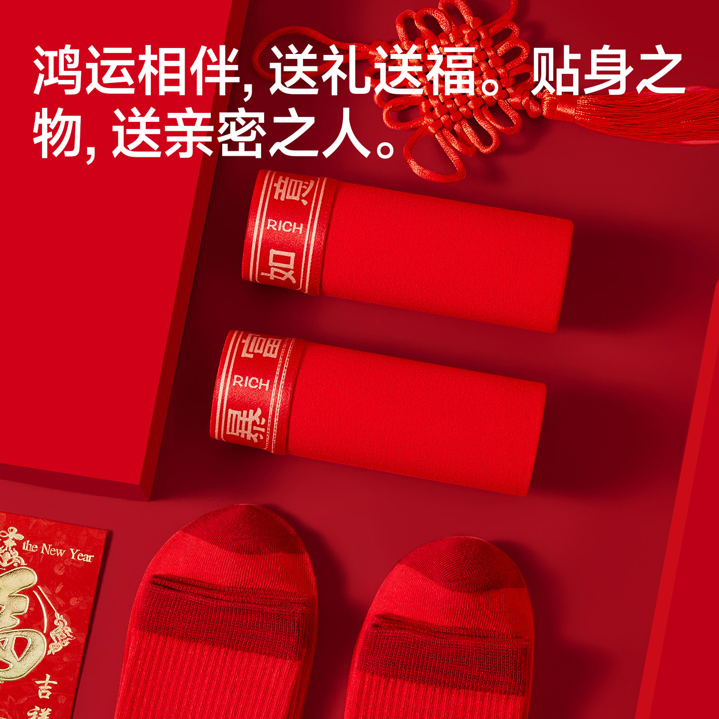 雅鹿男士本命年红内裤纯棉男款2026属马年结婚男生四角短裤衩袜子