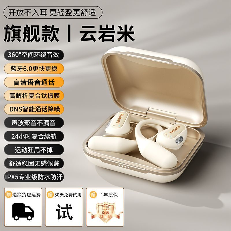 飞利浦TAQ4020无线蓝牙耳机开放式挂耳降噪耳机2026新款运动