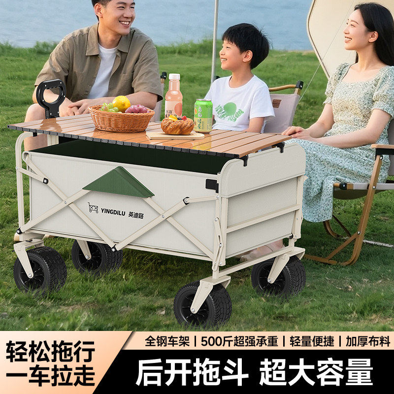 歌秀丹露营推车营地拖车户外折叠超大野营手拉车小推车野餐车桌板