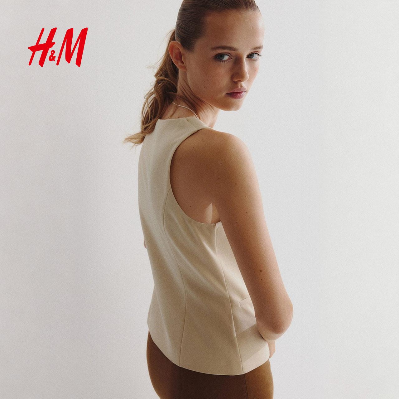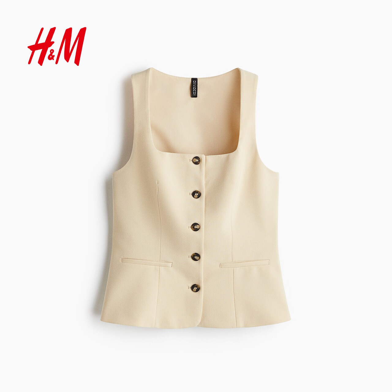 HM女装马甲春季方领简约气质通勤时尚西装马夹1294609