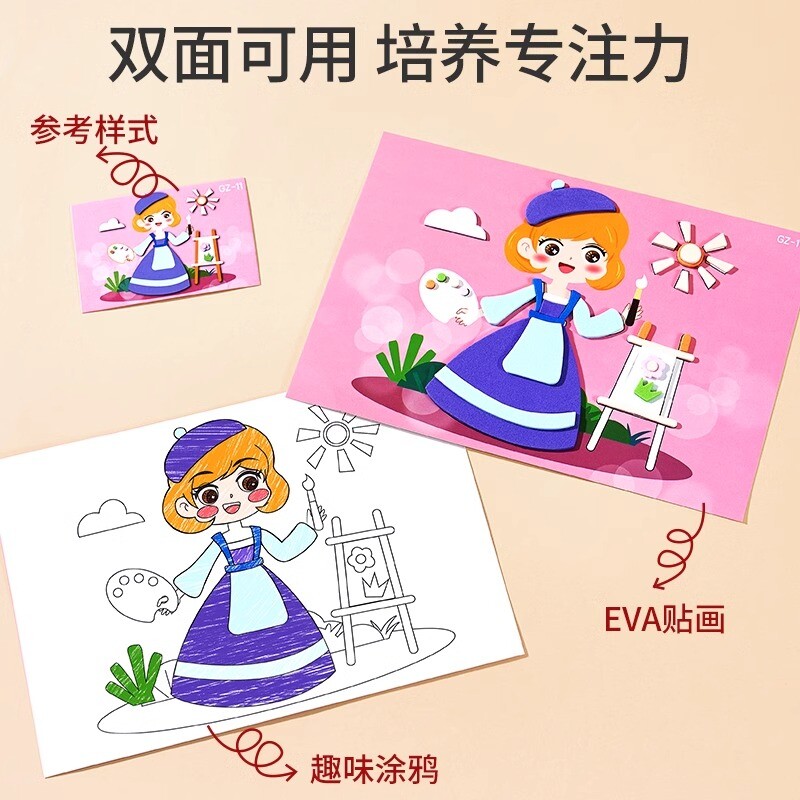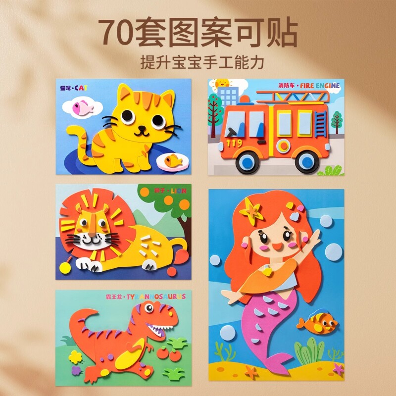 儿童3d立体手工贴纸玩具diy粘贴画女宝宝卡通益智eva贴贴画幼儿园