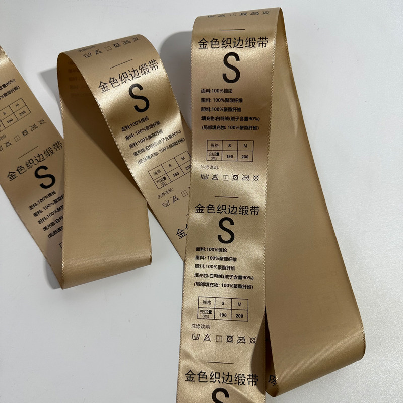 金色缎带服装水洗标水洗唛 金黄色香槟色压边织带高档服饰羽绒服皮草羊毛衫大衣商标带