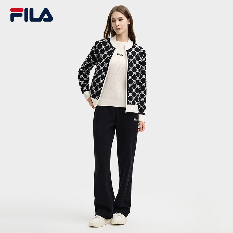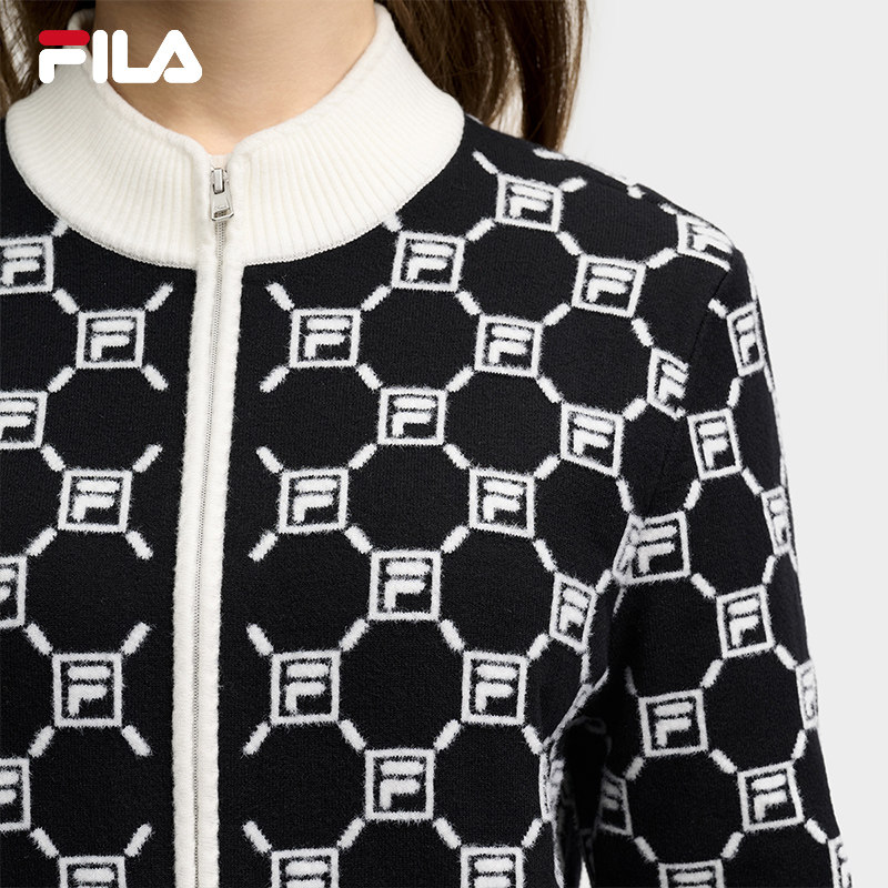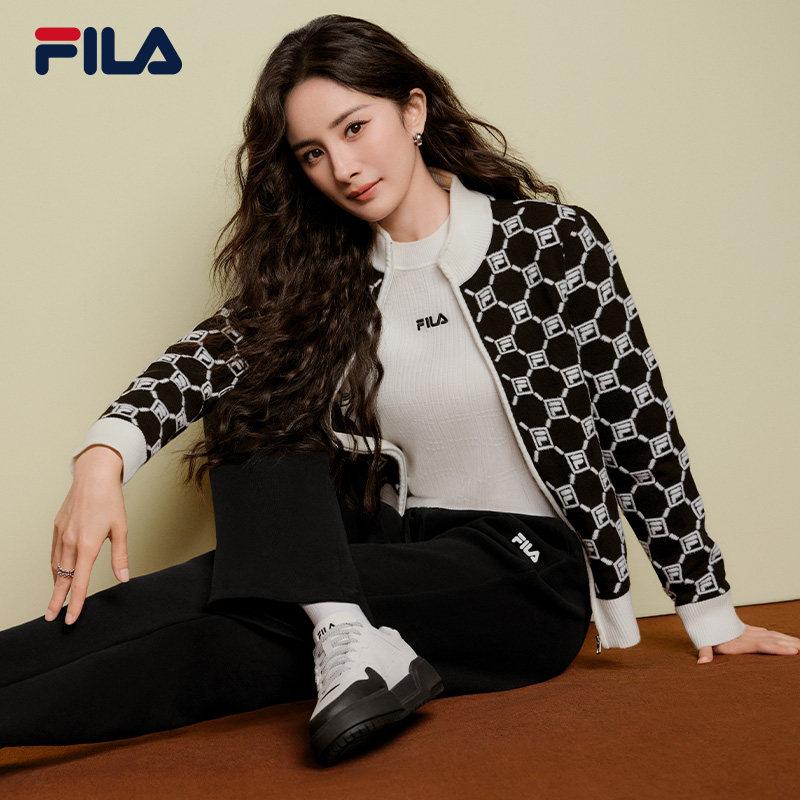 杨幂同款FILA斐乐女编织衫毛衣外套运动毛衫时尚休闲长袖保暖上衣