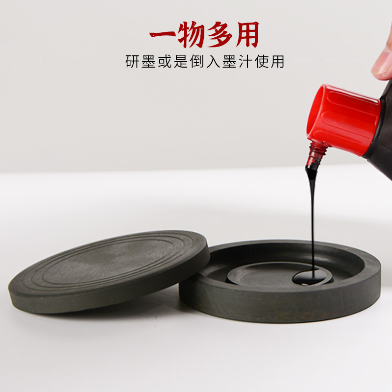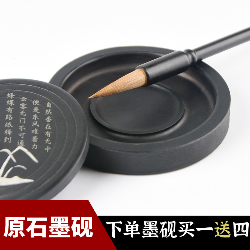 砚台带盖书法专用密封原石天然小学生三年级多功墨池墨盒墨盘小墨盒墨砚可砚磨墨圆形文房四宝初学者用具工具