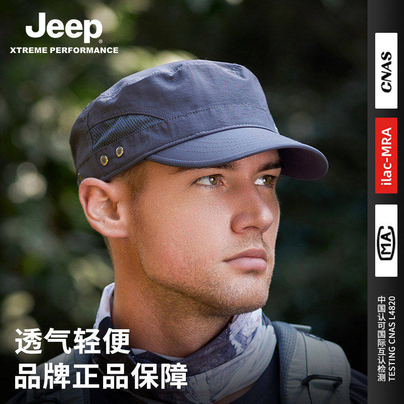 jeep吉普夏季男士棒球帽户外钓鱼防晒速干轻薄鸭舌平顶帽遮阳帽子