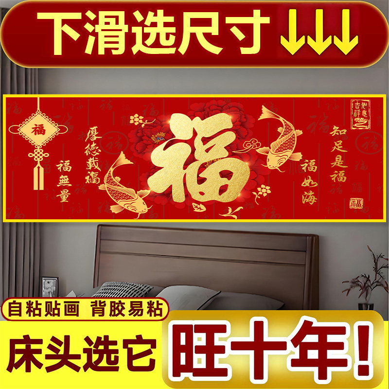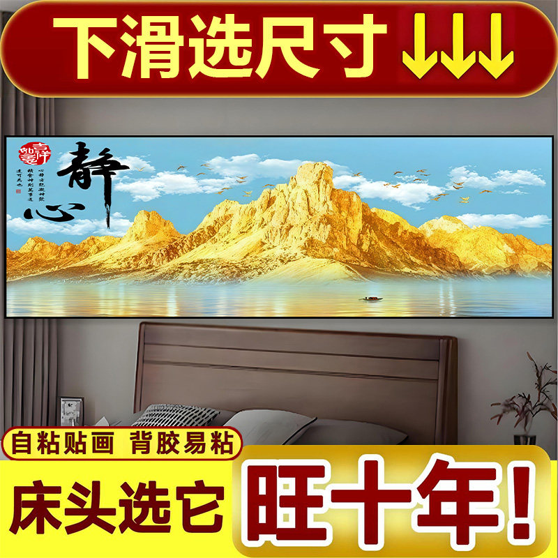 卧室床头背靠金山装饰画客厅挂画自粘中式沙发背景墙贴画壁画贴纸