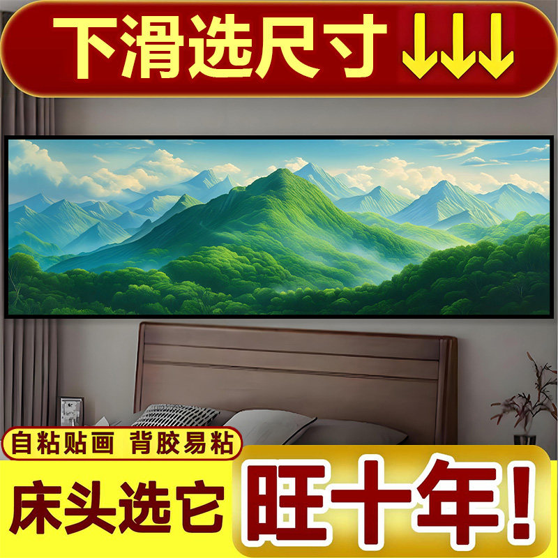 床头贴画装饰画客厅沙发背景自粘卧室墙贴3D现代风景轻奢山水墙纸