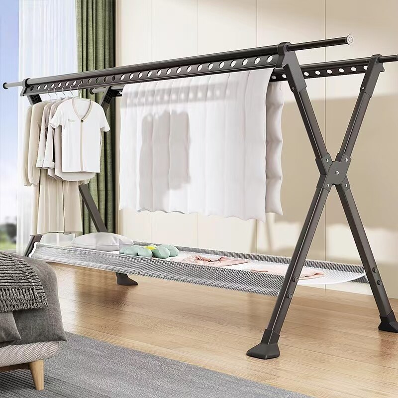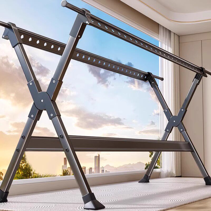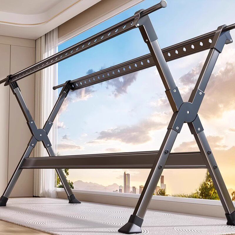 落地晾衣架卧室家用折叠挂衣架客厅阳台室内外晾衣杆伸缩晒被子架