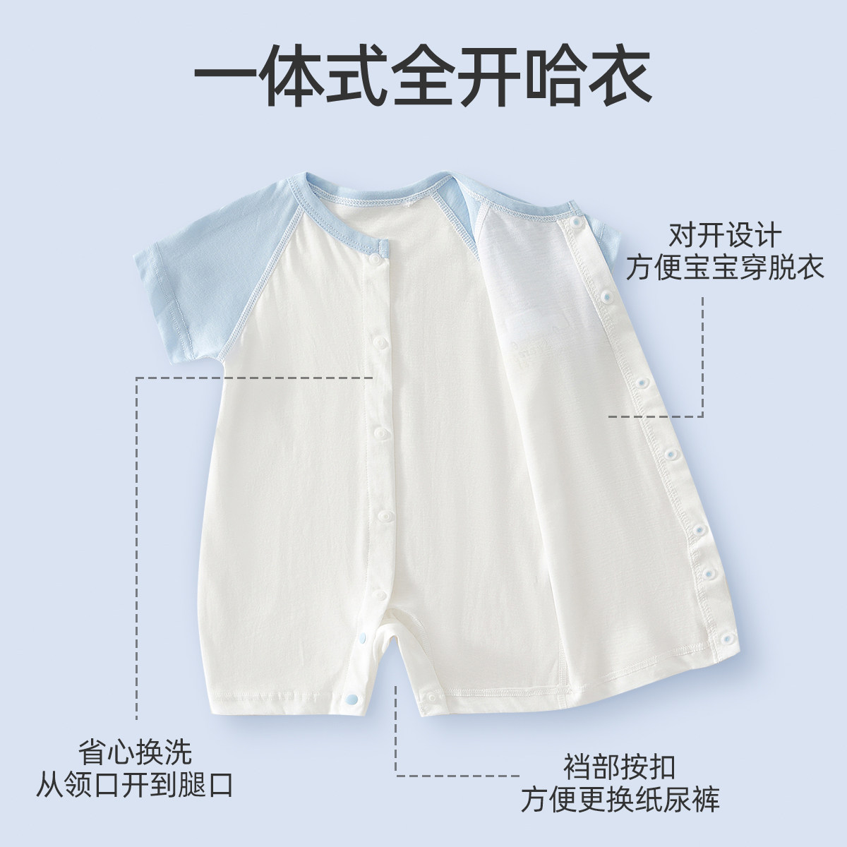 婧麒新生婴儿连体衣夏季薄款衣服短袖哈衣婴幼儿纯棉夏宝宝空调服
