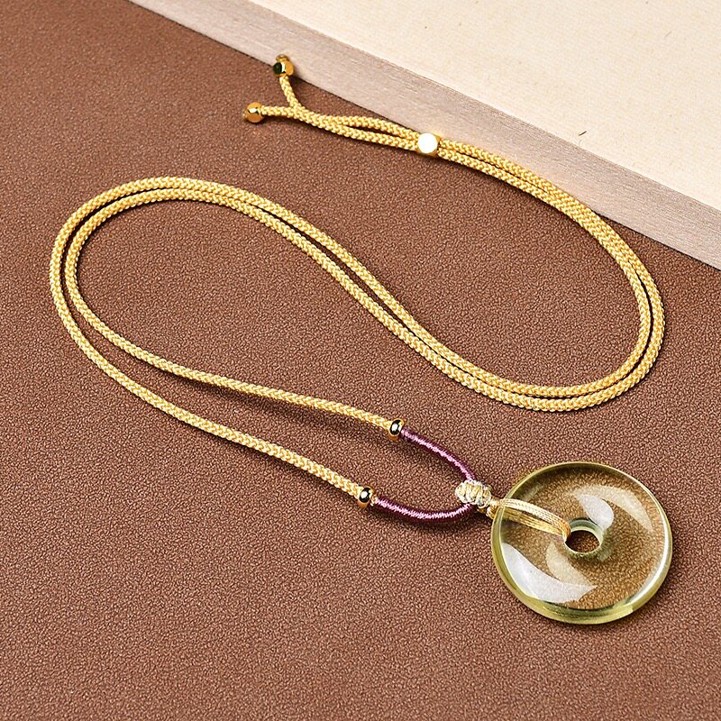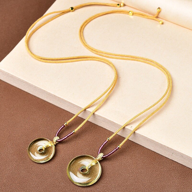 天然黄水晶平安扣吊坠圆形挂件项链毛衣链情人节礼物送对象带证书