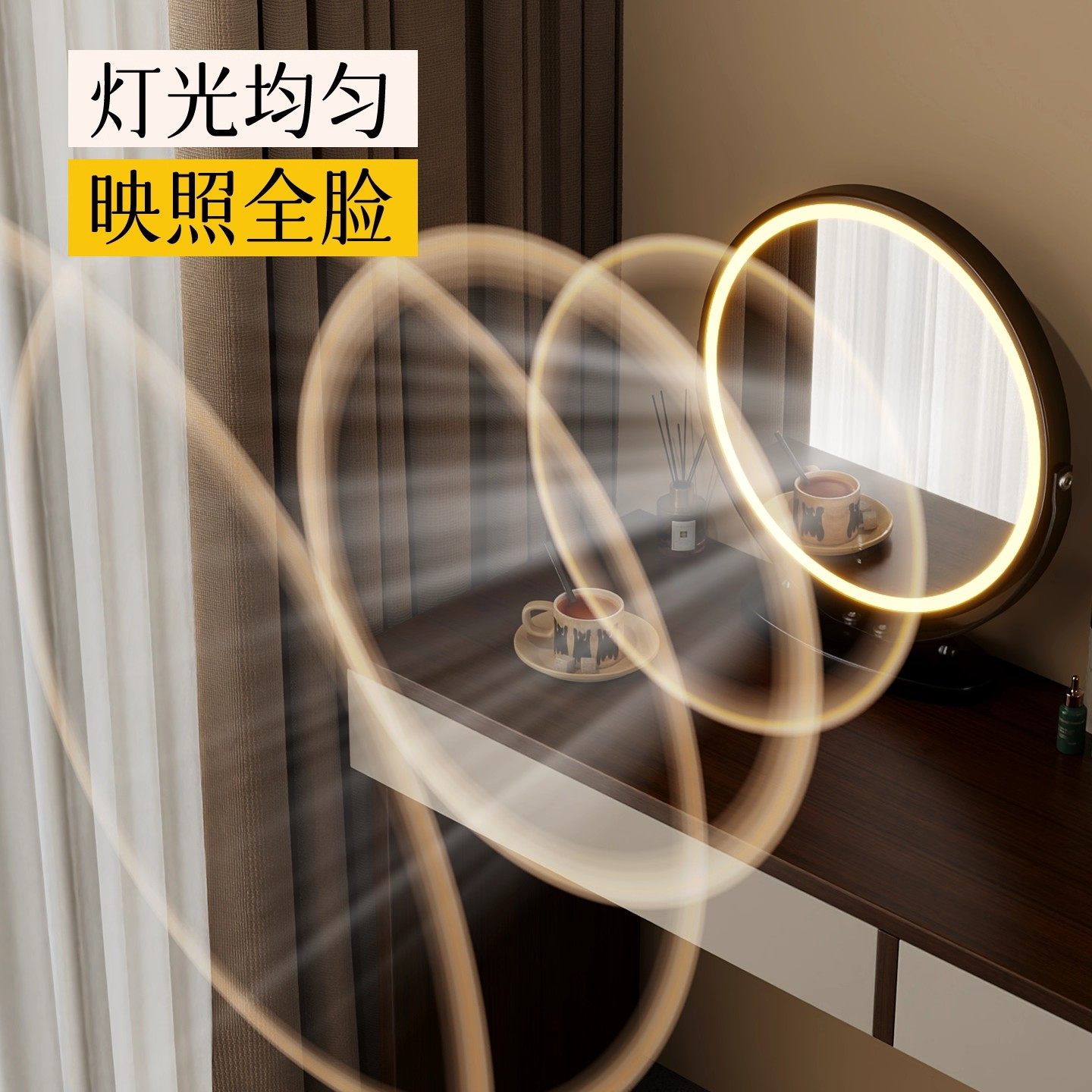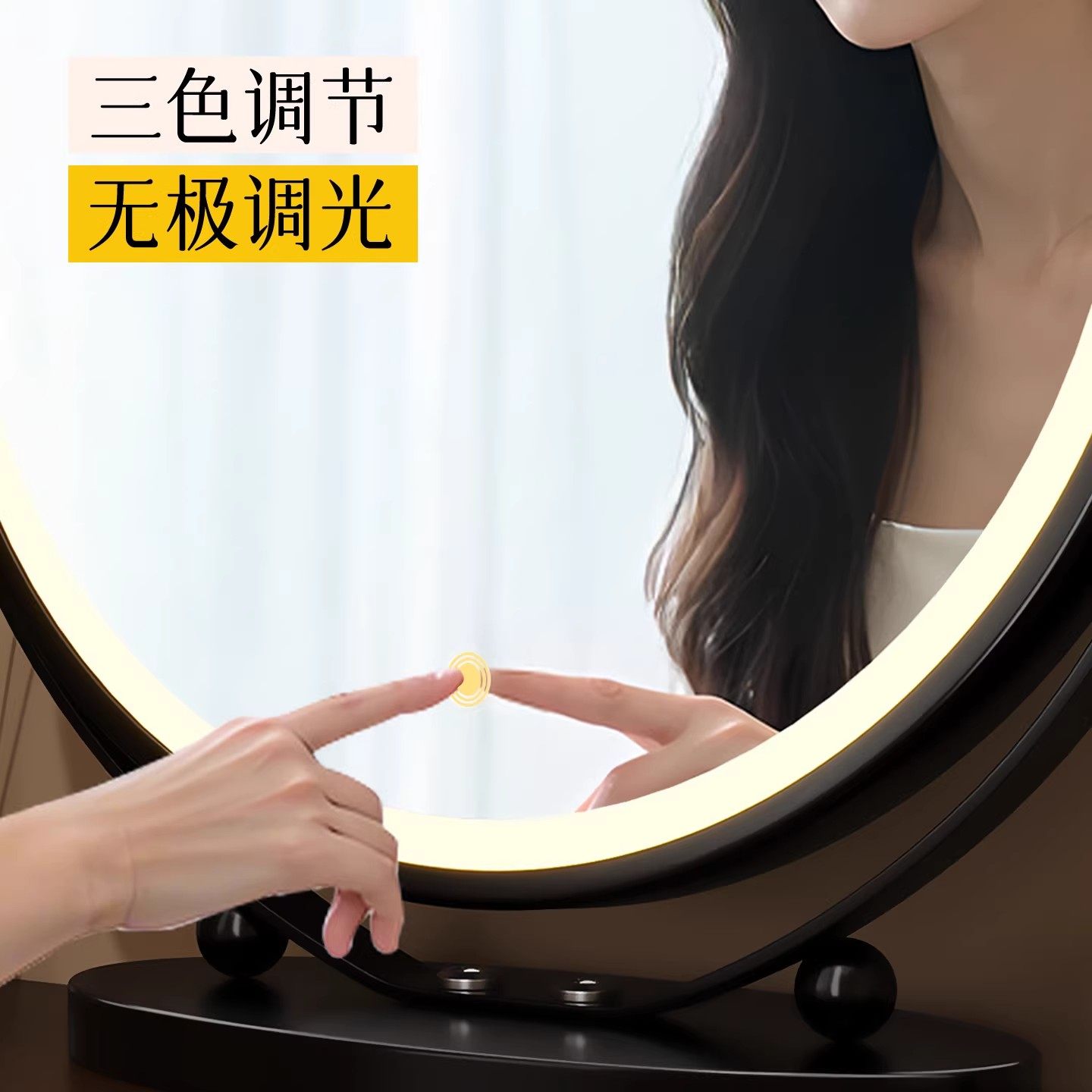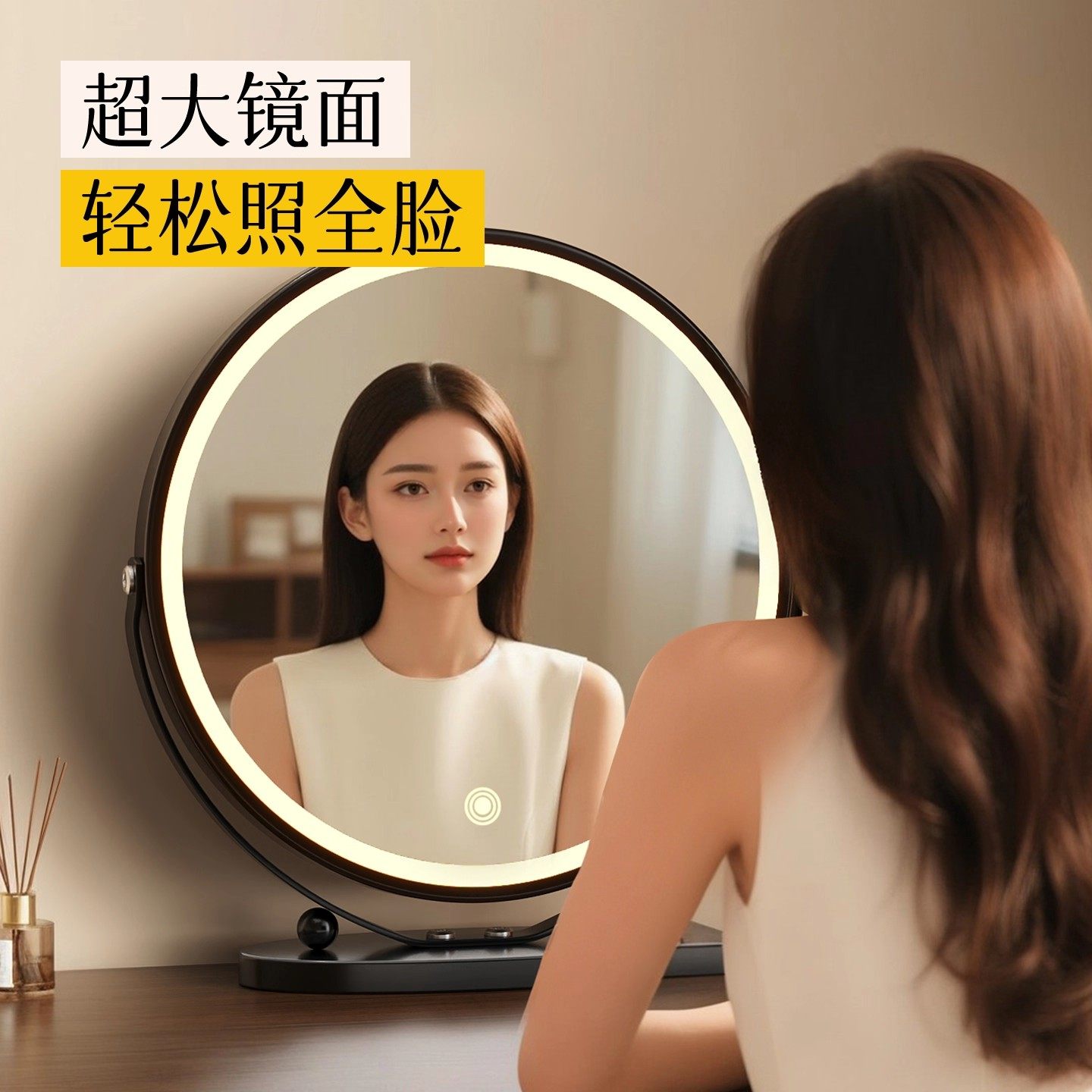 2026新款化妆镜LED带灯轻奢高级感梳妆镜卧室大镜子可旋转美妆镜