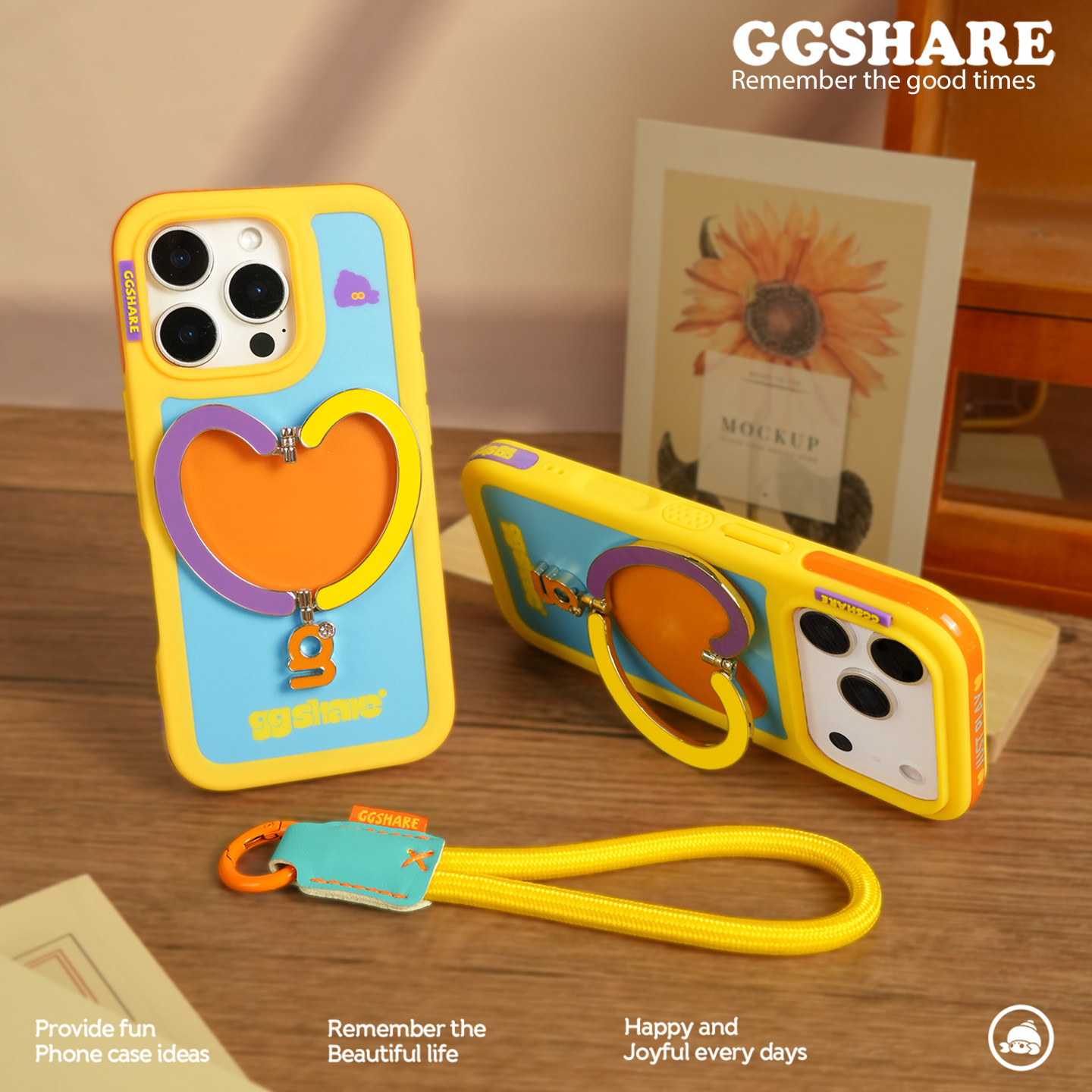 GGSHARE寄居蟹怦怦心动金属支架壳适用苹果17手机壳 iPhone16保护套防摔新款15promax手机套14超好看带手腕绳