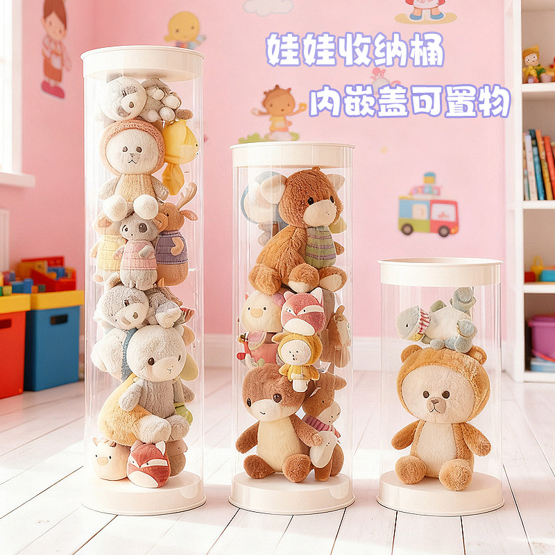 娃娃收纳桶透明儿童毛绒玩具客厅公仔收纳筐装玩布偶收纳筒整理箱