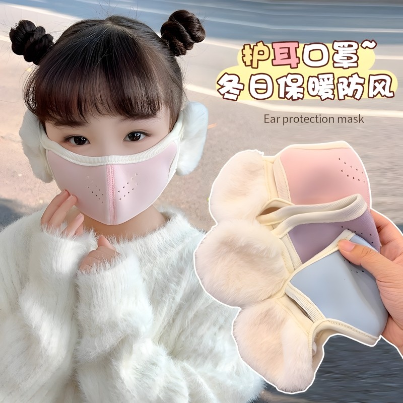 儿童保暖口罩耳罩一体男女童上学防风透气护耳秋冬防尘面罩可水洗