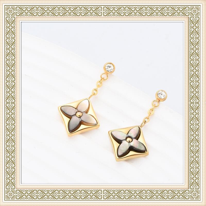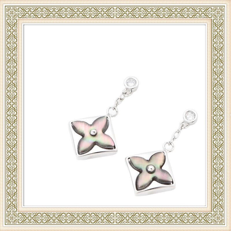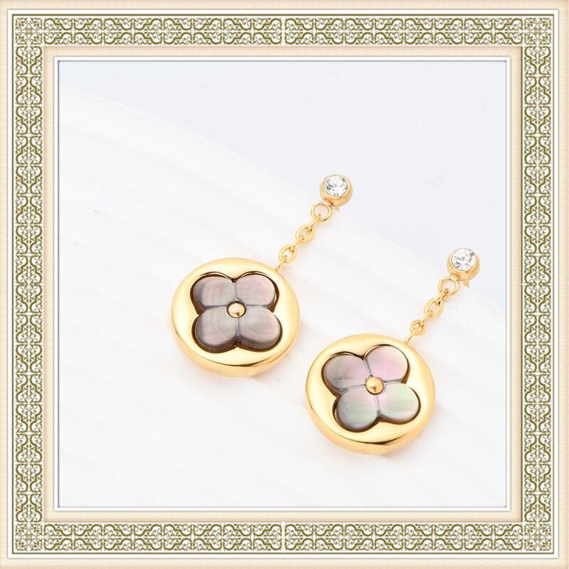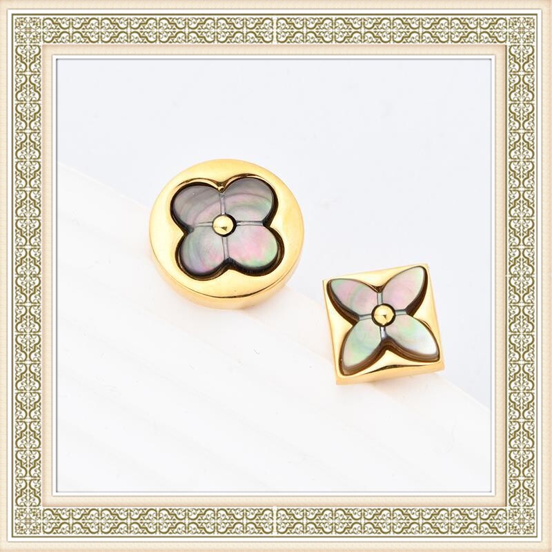 雅宝四叶草天然贝母V金厚度真金耳钉尖花圆饼纯银针耳钉粉贝白贝