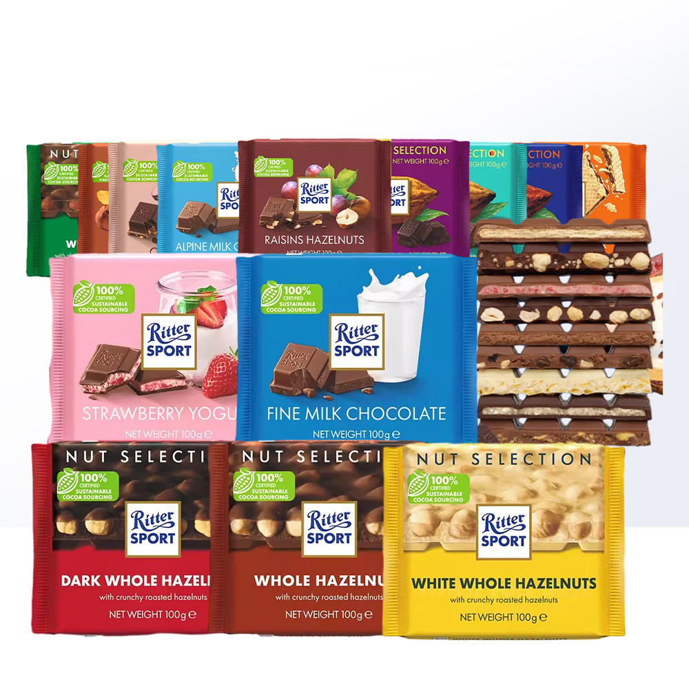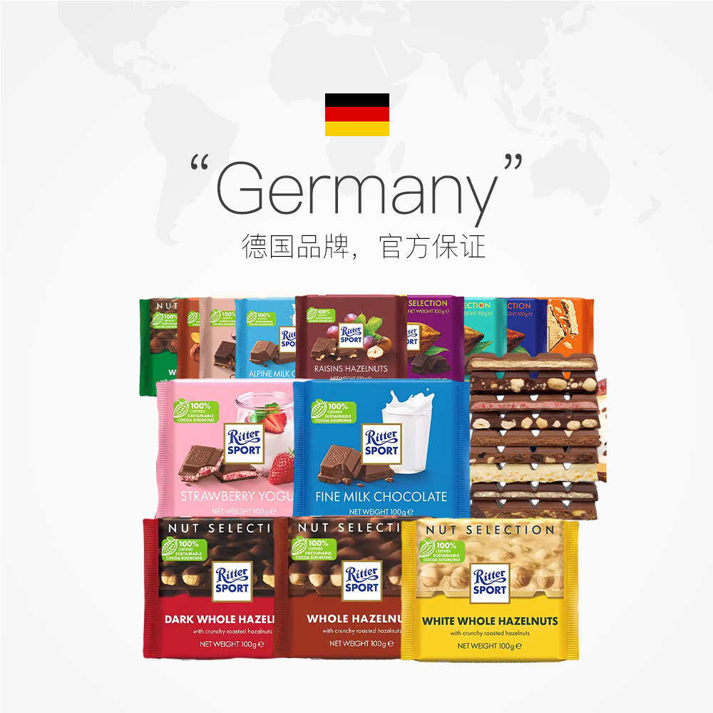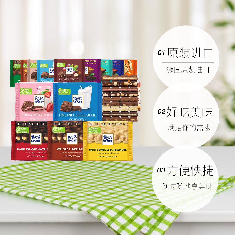 【自营】德国瑞特滋巧克力rittersport黑巧全榛子坚果瑞特斯波德