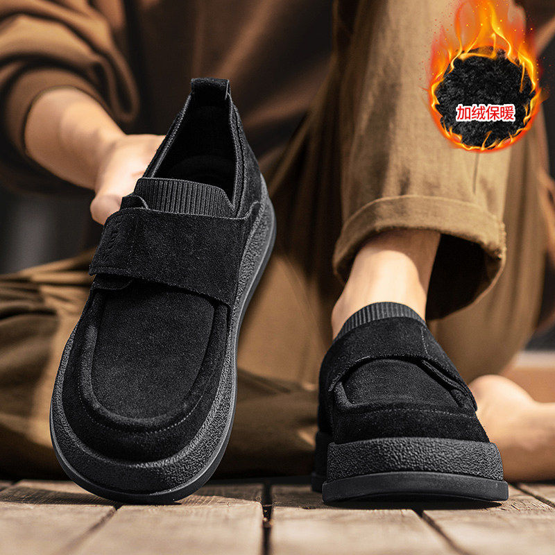 翻毛皮男鞋2025冬季新款加绒加厚保暖棉鞋一脚蹬男士防寒豆豆潮鞋