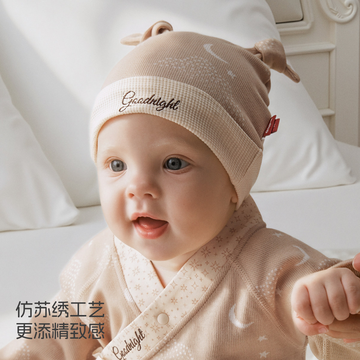 十月结晶粒粒阳光婴儿帽子a类0到3个月新生小月龄宝宝护囟门胎帽
