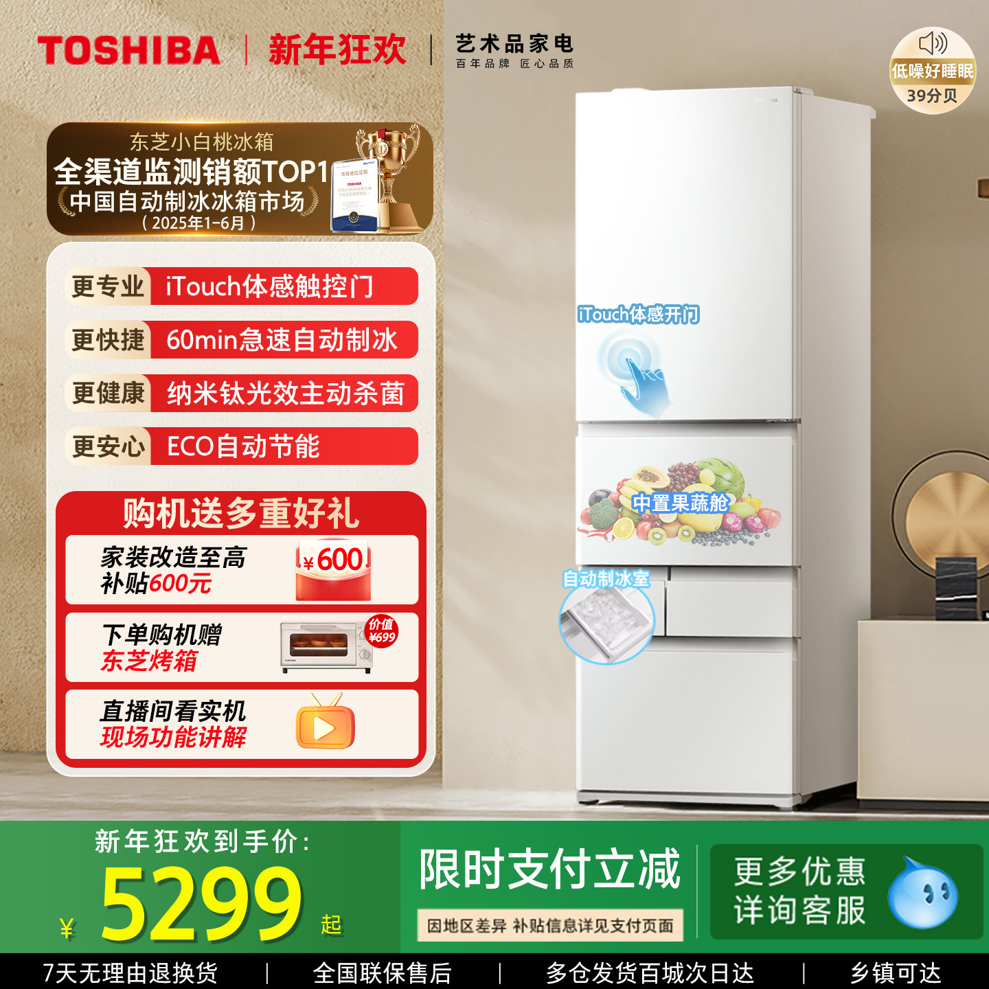 东芝小白桃429小户型大容量变频无霜法式日式家用自动制冰电冰箱