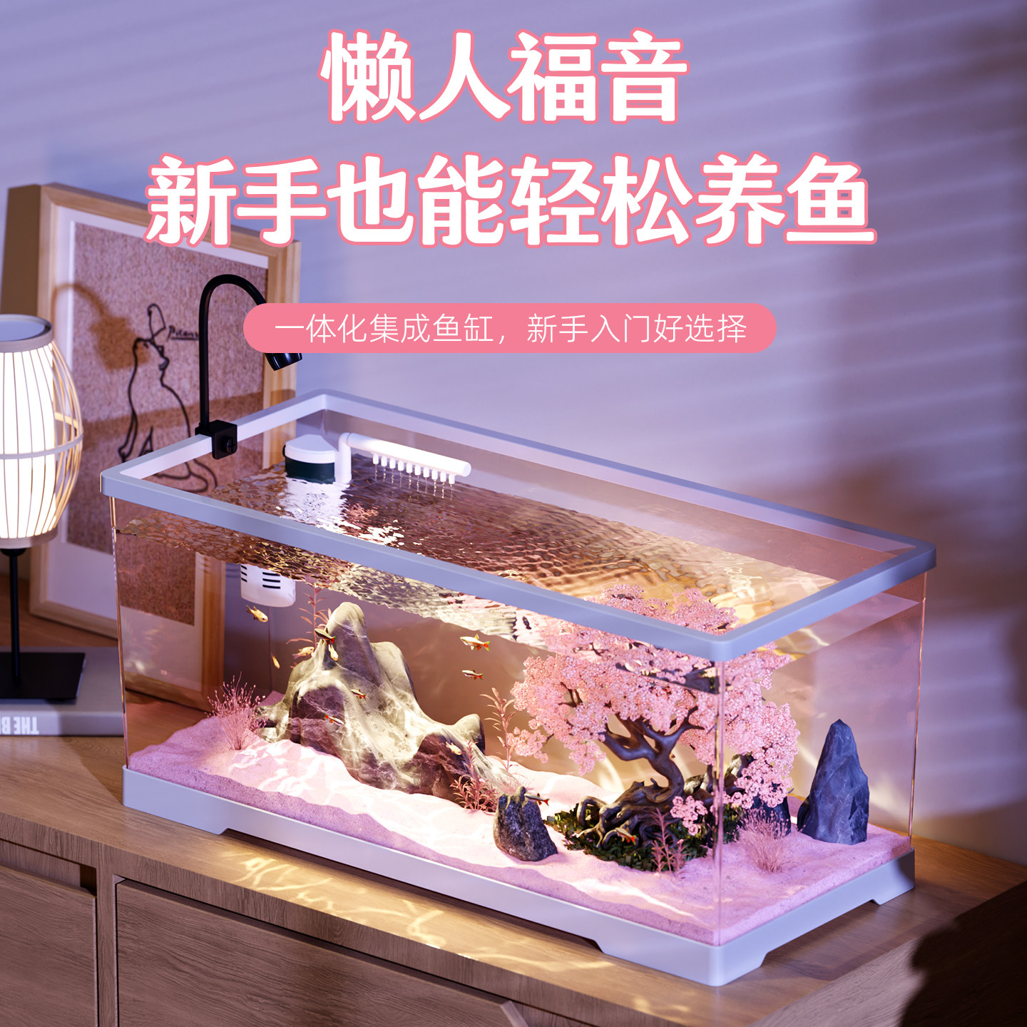 新款生态桌面金鱼缸过滤制氧一体机小型家用客厅造景全套塑料鱼缸