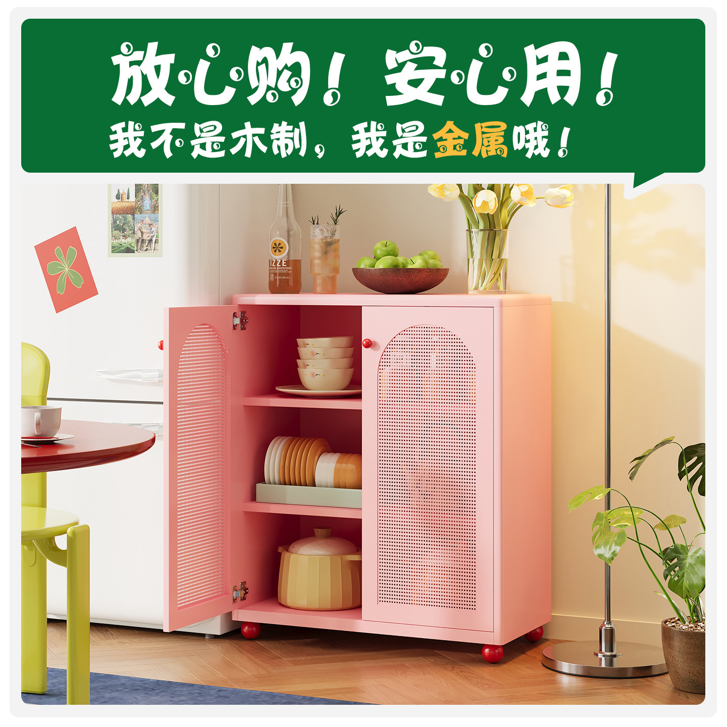防潮钢制餐边柜厨房阳台多功能金属储物柜加厚承重铁艺客厅置物柜