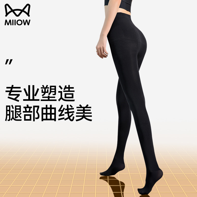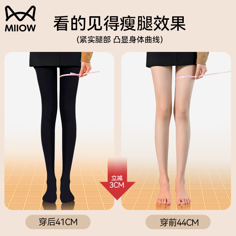 猫人瘦腿袜女强压力显瘦黑色光腿神器春秋冬季加厚绒款打底连裤袜