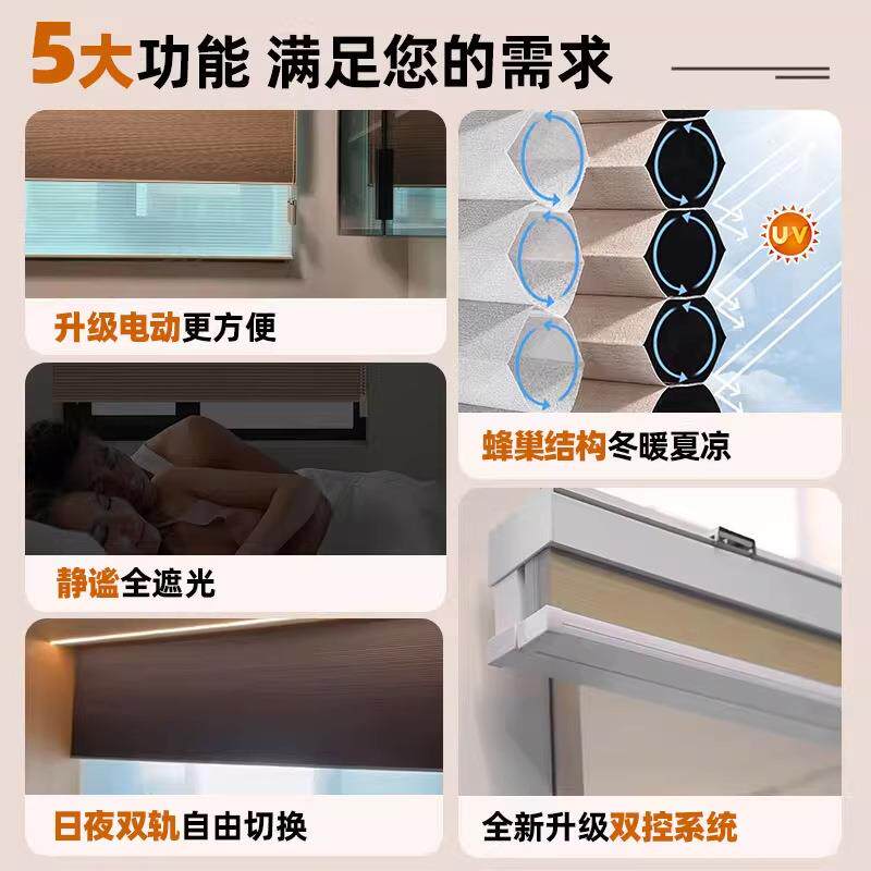 双排日夜蜂巢帘百叶蜂窝窗帘全遮光遮阳书房卧室手拉电动式卷帘