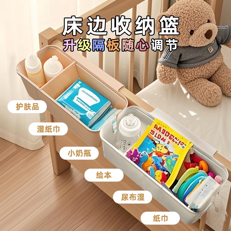 婴儿床边挂篮收纳篮床挂宝宝床头围栏尿片收纳盒尿布绘本纸巾玩具