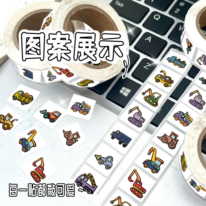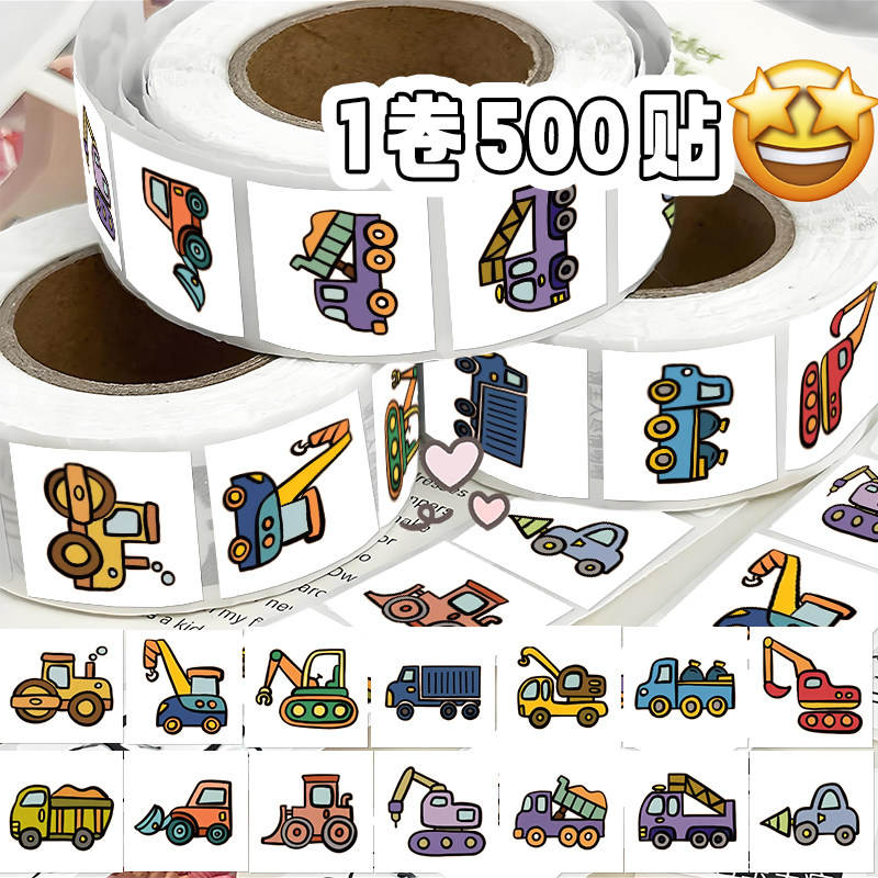 可爱卡通工程车女孩儿童贴画早教玩具手账奖励贴画装饰diy创意贴纸