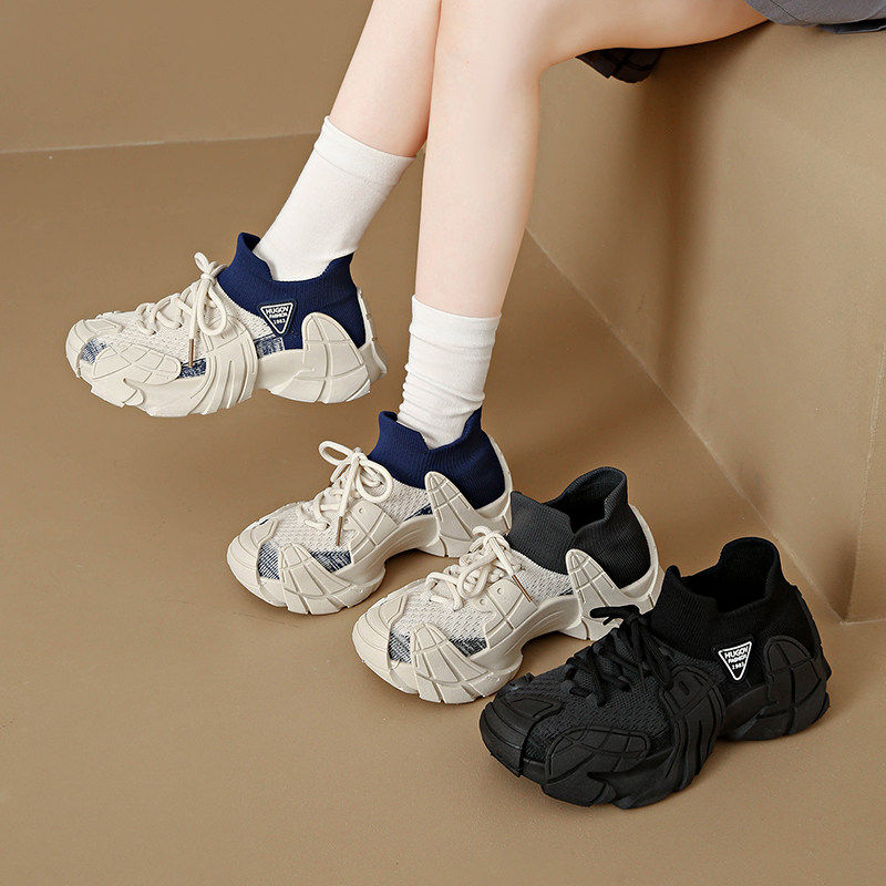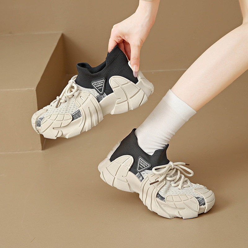 时尚蜘蛛王女鞋休闲运动鞋2026新款春春季爆款飞织厚底老爹鞋椰子