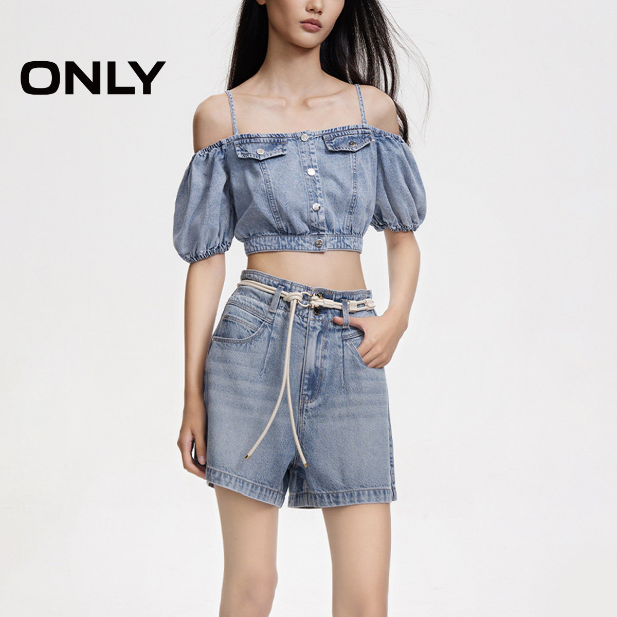 【ONLY奥莱】春夏新款时尚休闲废土风高腰A字牛仔短裤女