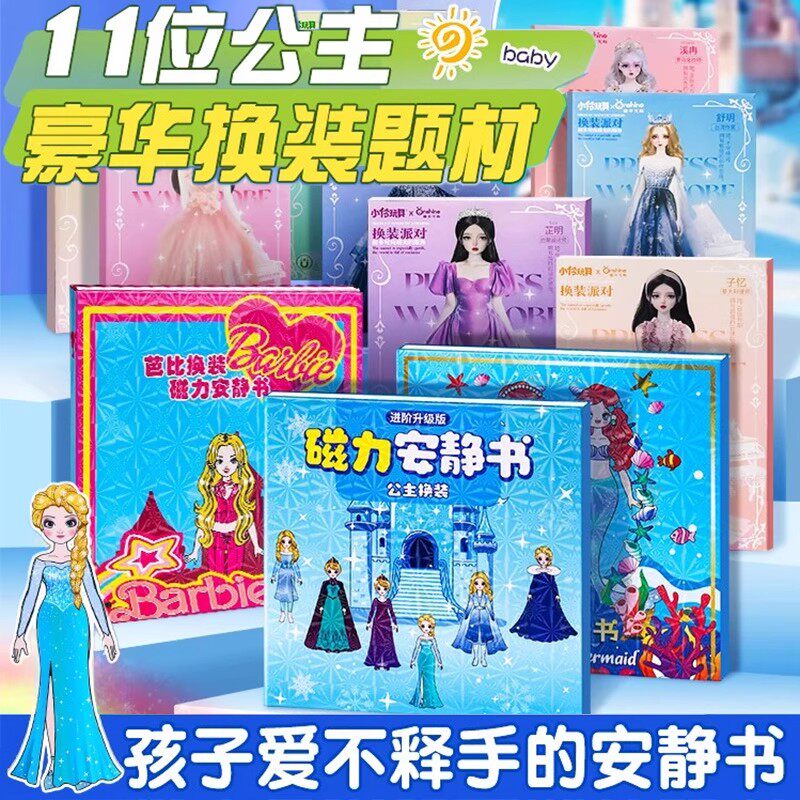 爱莎艾莎公主换装磁吸安静书新款女孩磁力贴大本免裁剪益智玩具