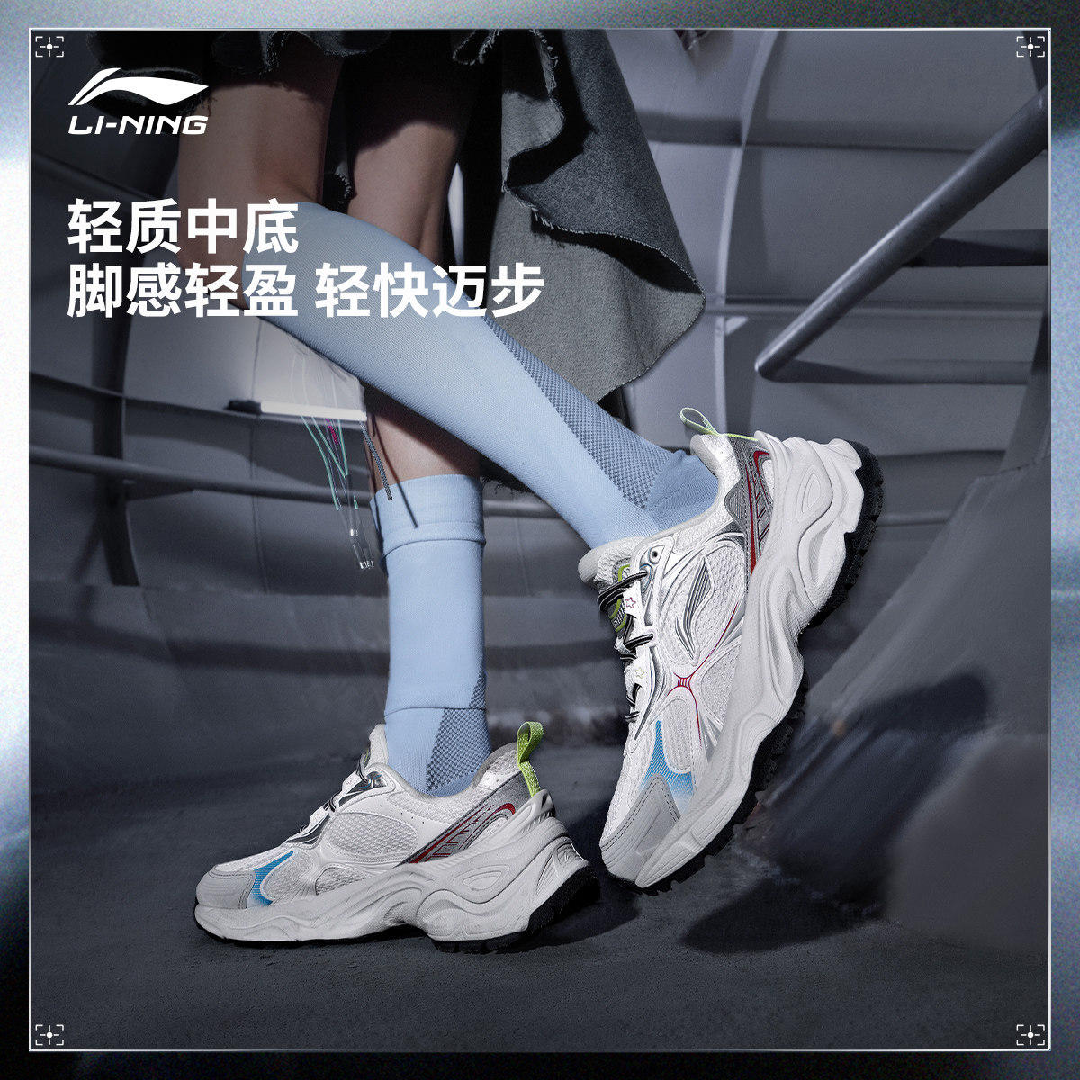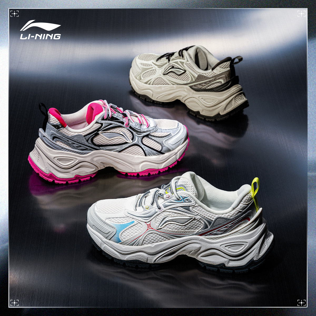 李宁星环丨休闲鞋女鞋新款复古老爹鞋减震回弹厚底增高跑步运动鞋