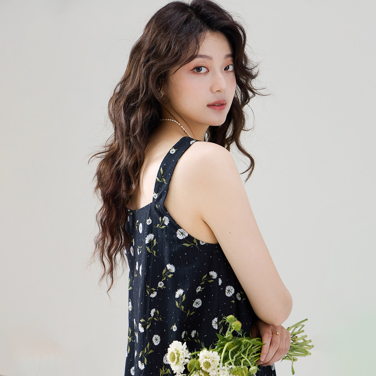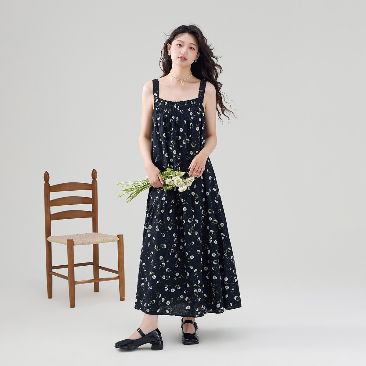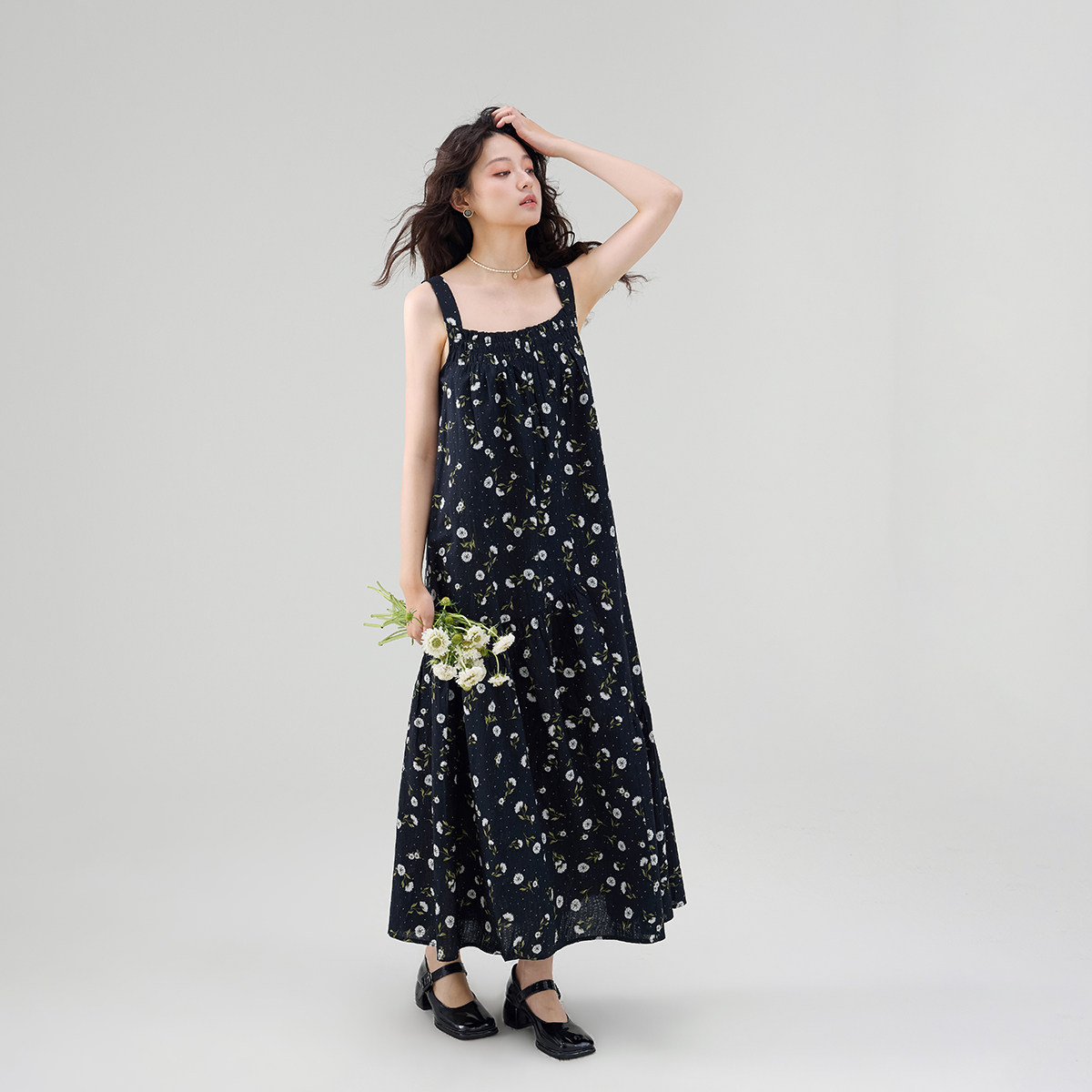 夏季裙子宽松显瘦洋气法式碎花连衣裙女高级感长款a字纯棉吊带裙