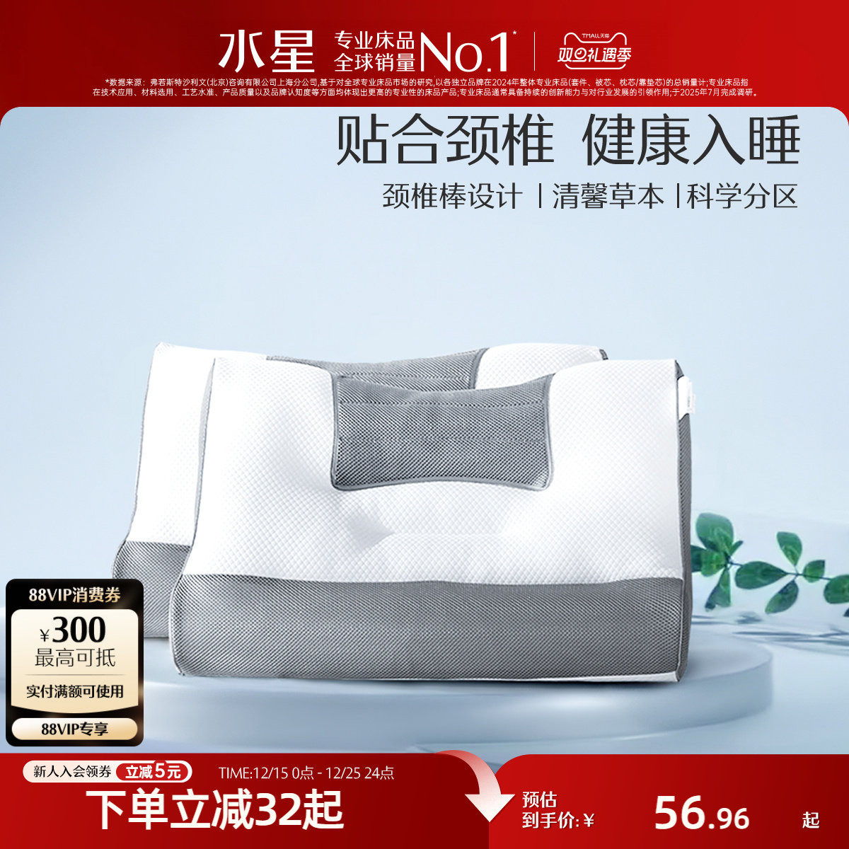 水星家纺人体工学枕头记忆棉深睡颈椎枕芯枕套成人礼盒辅助睡眠