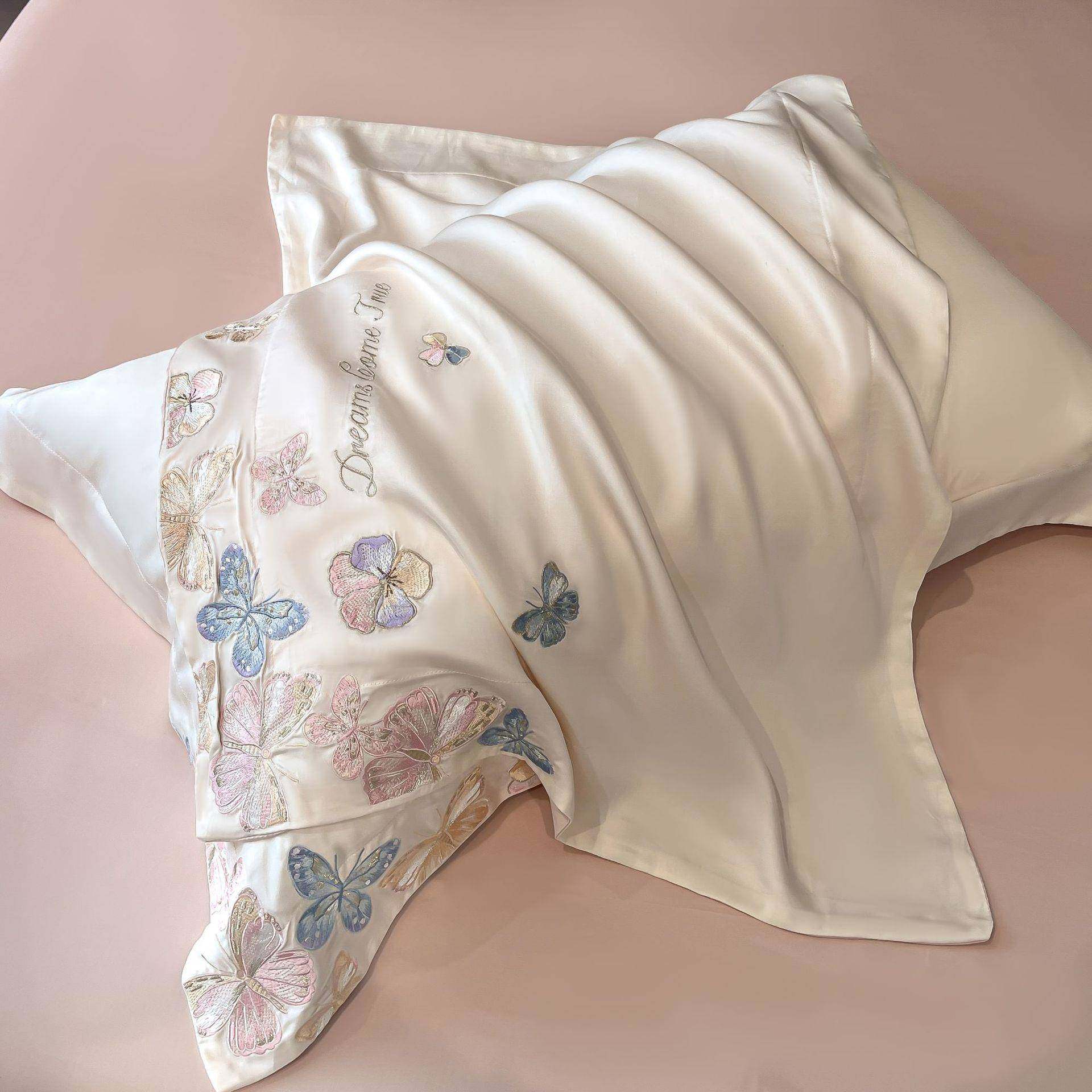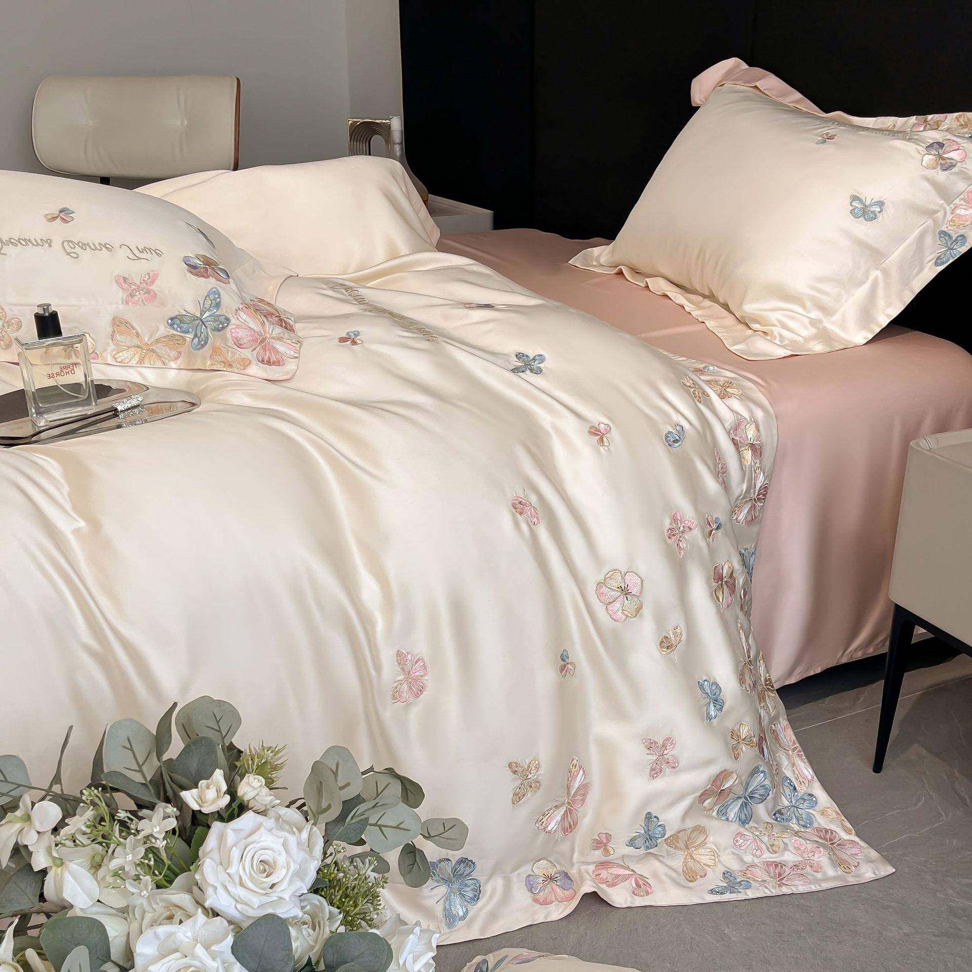 高档水洗天丝刺绣四件套夏季冰丝凉感轻奢被套床单裸睡床上套件