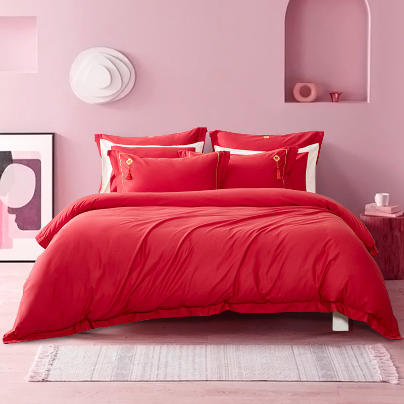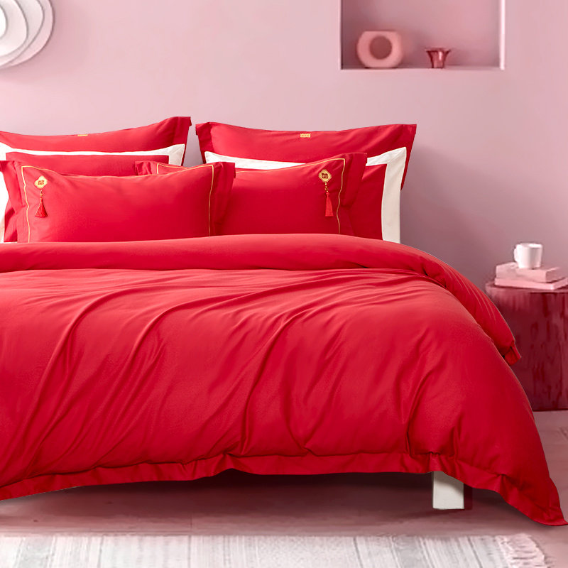 SANDMAN婚庆四件套全棉纯色结婚床上用品大红色床单被罩喜被陪嫁